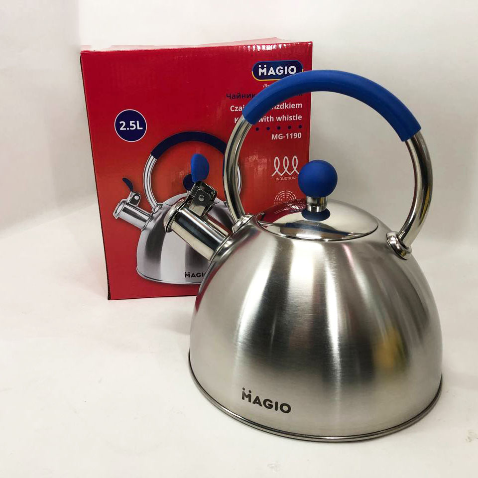 Чайник со свистком Magio MG-1190 2.5 л, хороший чайник со свистком, металический чайник из нержавейки