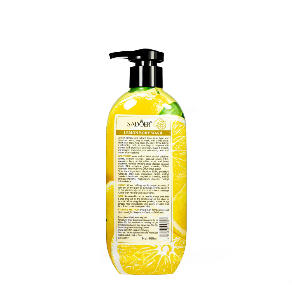 Делікатний зволожуючий гель для душу Sadoer LemonГель для душу живить та зволожує шкіру, допомагає усунути сухість, робить шкіру ніжною, гладкою, еластичною. Засіб допомагає глибоко очистити пори шкіри, освітлює та вирівнює тон, допомагає зменшити кількість акне на тілі. Гель для душу має легкий аромат парфумів, який подарує ще більше насолоди від прийняття душу та забезпечить відчуття свіжості не весь день.