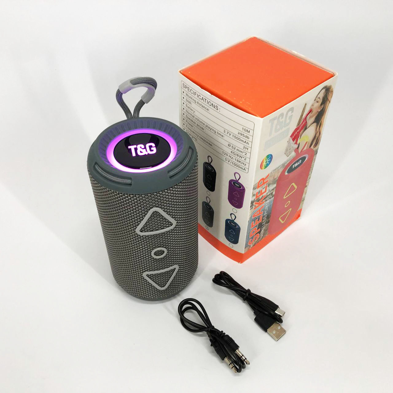 Портативная колонка TG655 5W с RGB подсветкой и ремешком, Громкая блютуз колонка. Цвет: серый