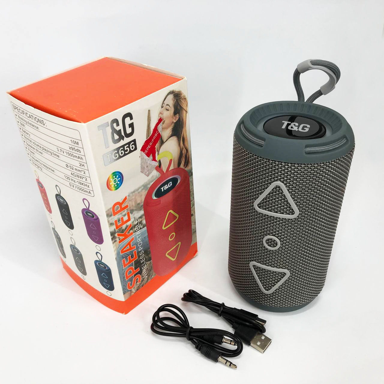 Bluetooth колонка портативная TG656 FM-радио, Громкая блютуз колонка, Колонка для вечеринки. Цвет: серый