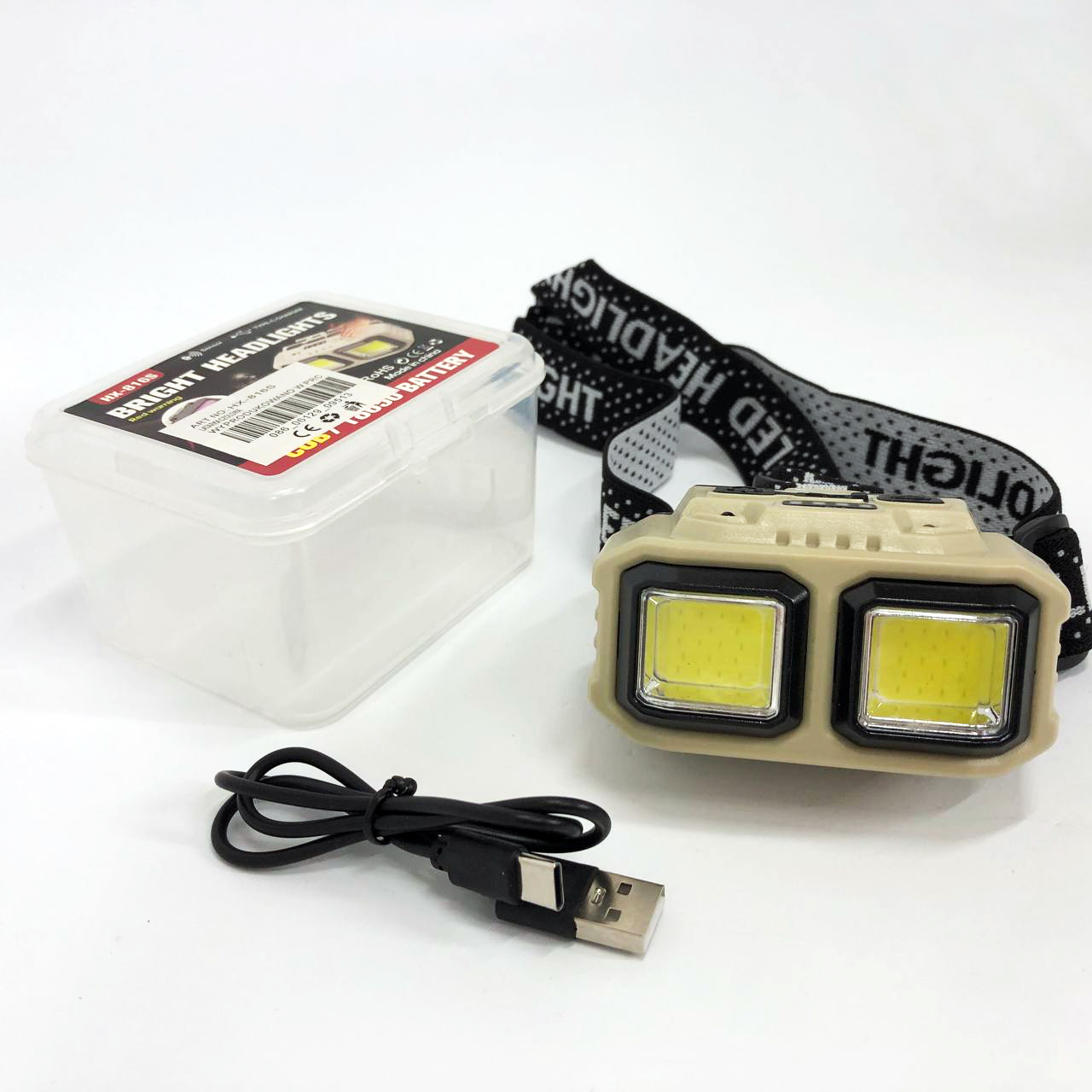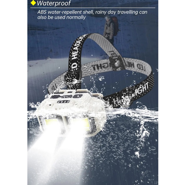 Фонарь налобный аккумуляторный Bailong HX-816S 2COB(white+red) с сенсорным датчиком влагозащита