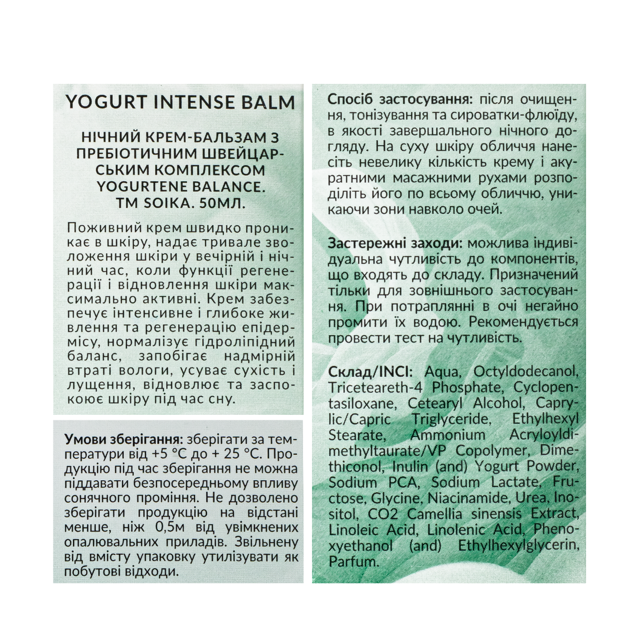 Крем-бальзам для обличчя нічний Soika Yogurt Intense Balm із пребіотиками 50 мл