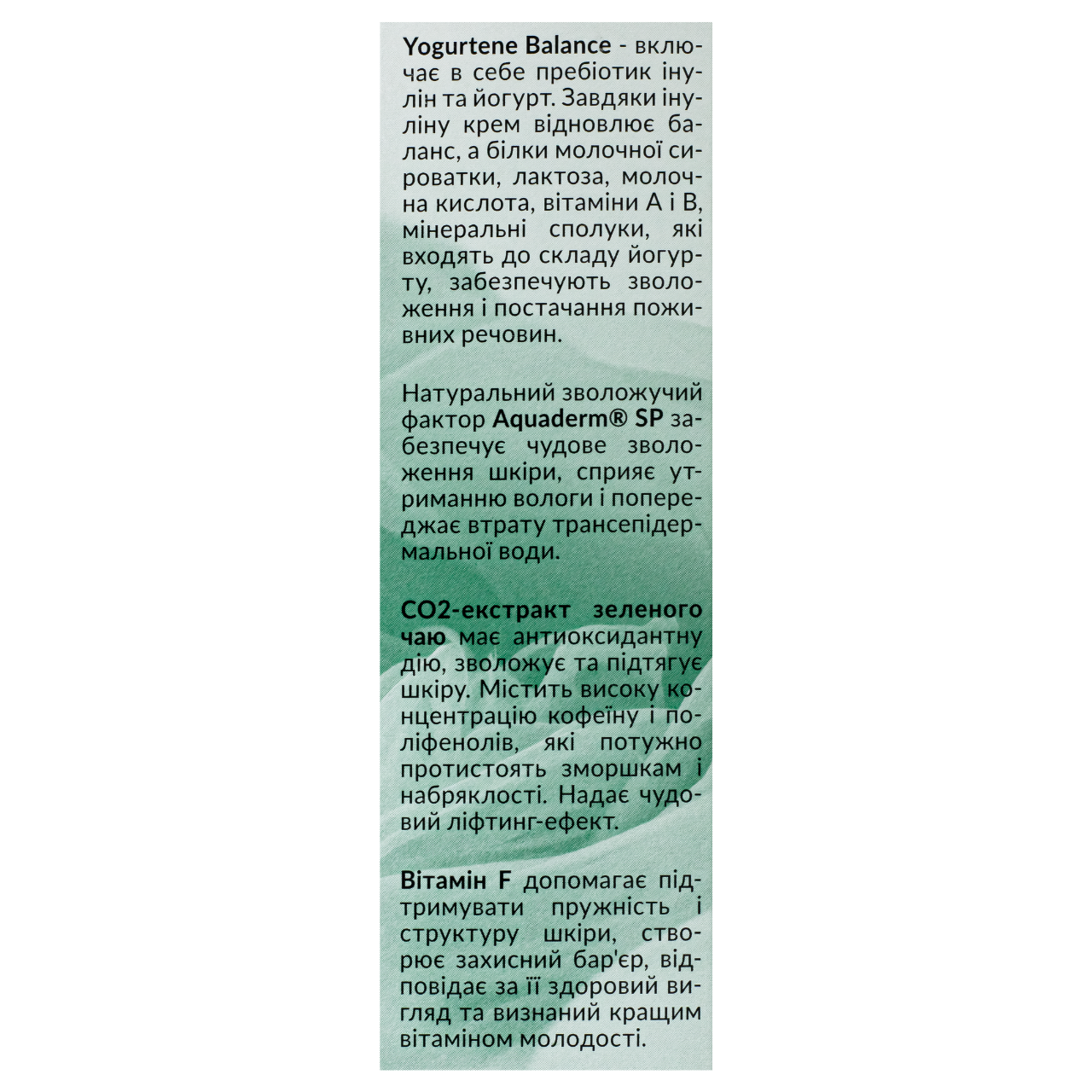 | Призначення і результат | Питание|Зволоження|Відновлення|Заспокоєння|Регенерація|Зняття запалення|Зняття роздратування |