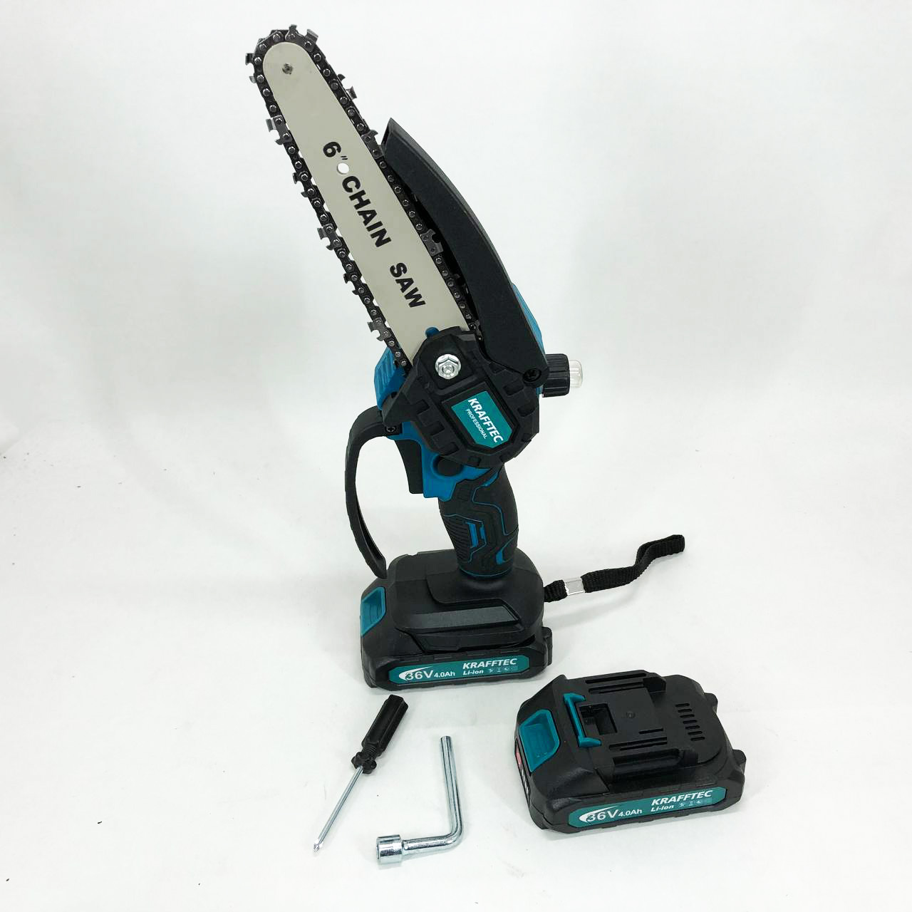 Аккумуляторная цепная мини пила 15 см в кейсе Krafftec (36V 4 Ач) + 2 аккумулятор и индикатором заряда