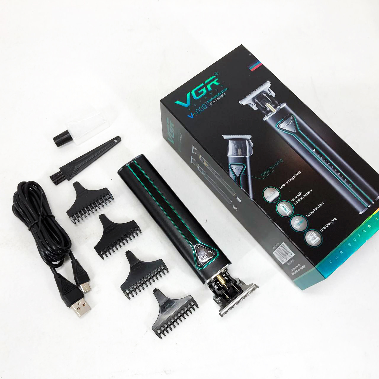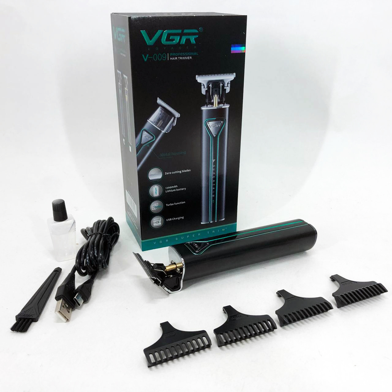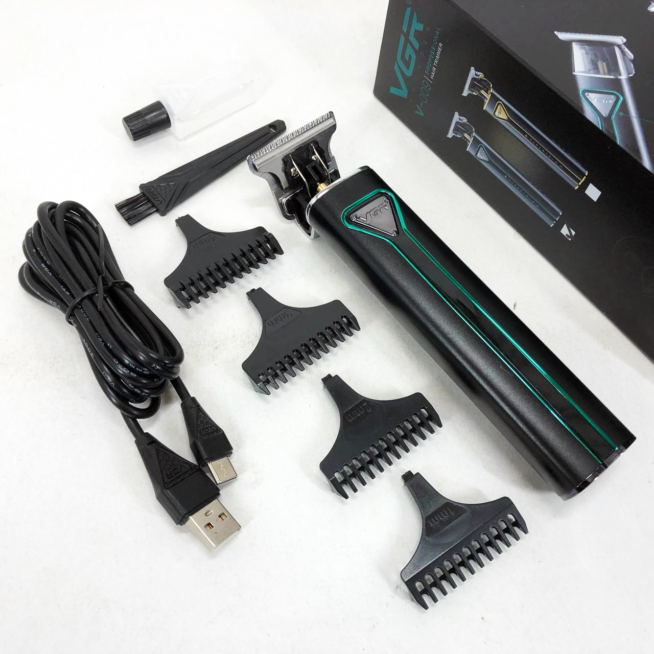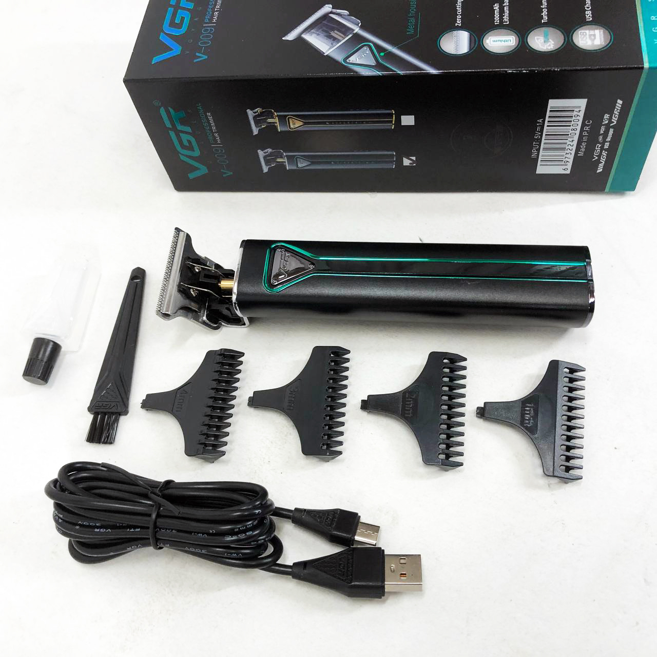 Машинка для стрижки волос VGR-009 отличается прочным корпусом, устойчивым к воздействию вибрации, низким уровнем шума, стильным дизайном, плавным ходом острых лезвий, удобством и длительным сроком эксплуатации. Лезвия выполнены из высококачественной нержавеющей стали, что обеспечивает максимально долгую остроту и комфортность использования. В комплекте идет зарядной шнур USB, а также щеточка для очистки и масло для лезвий.