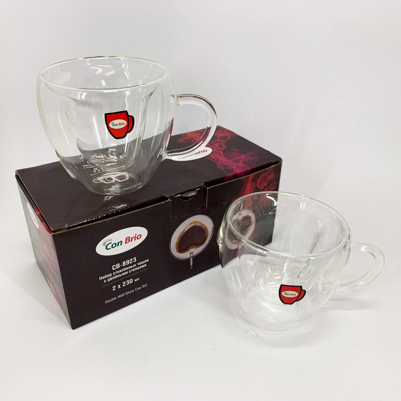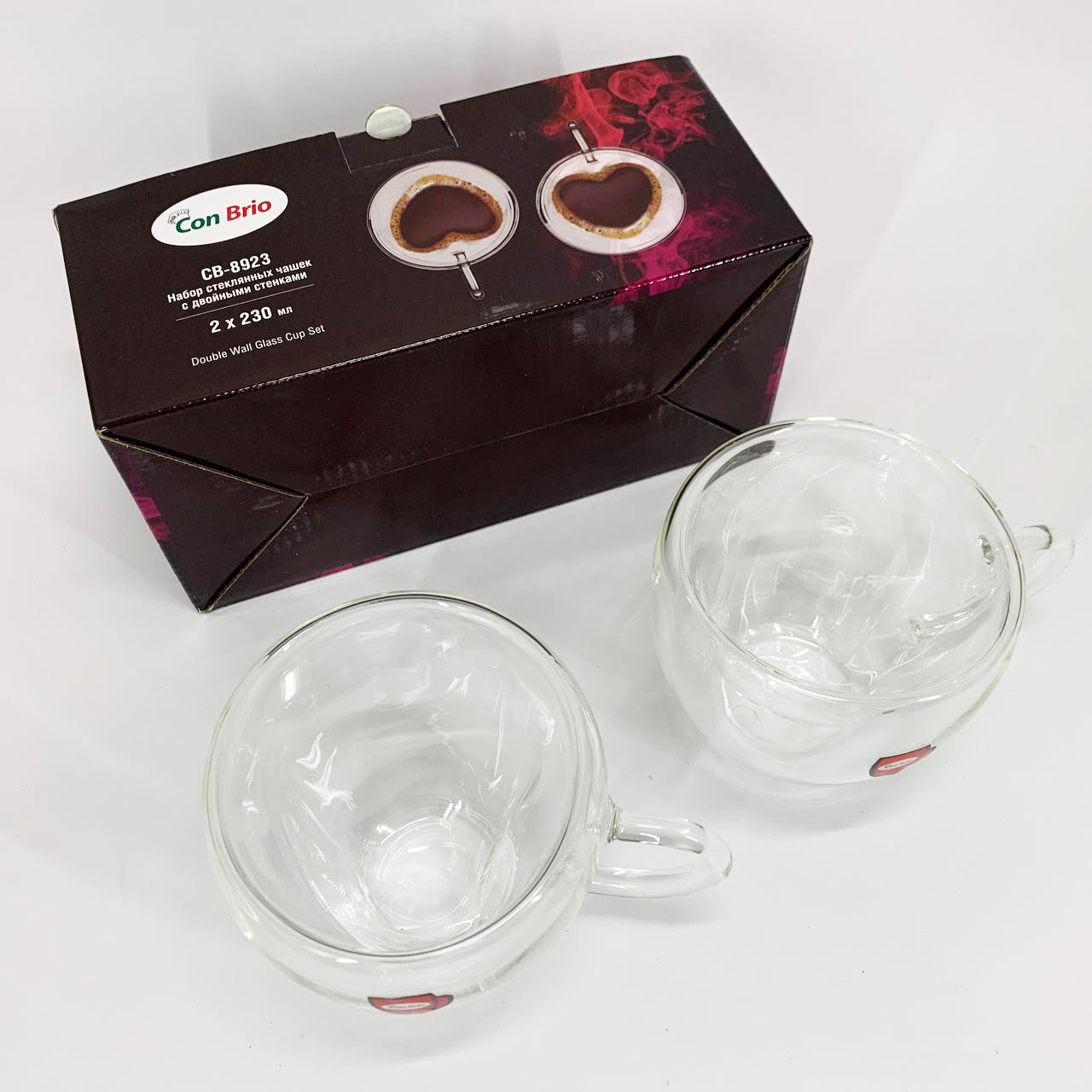 Набор чашек сердце Con Brio CB-8923-2 230 мл, 2 шт, Кружки стеклянные с двойным дном, Чашки для еспресо