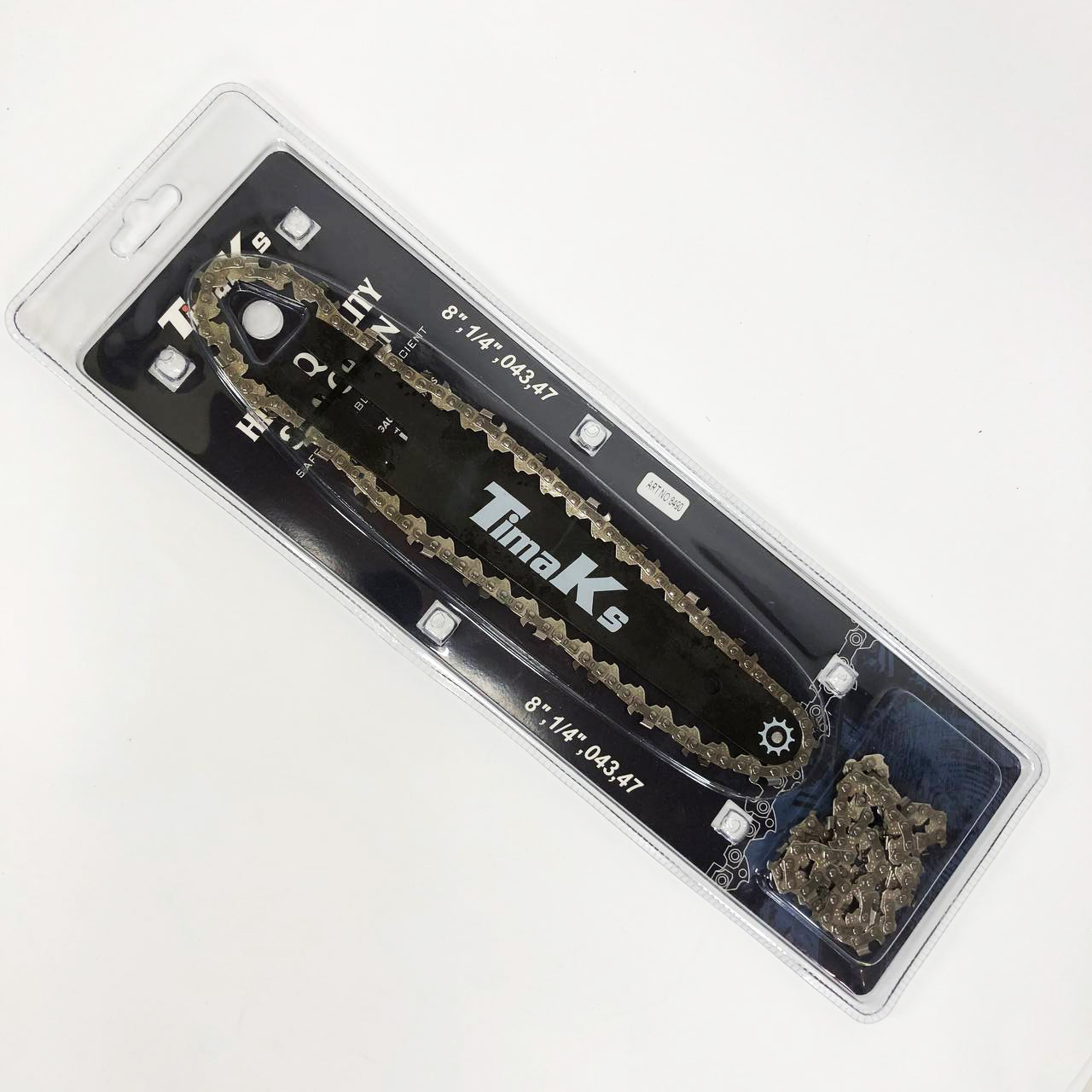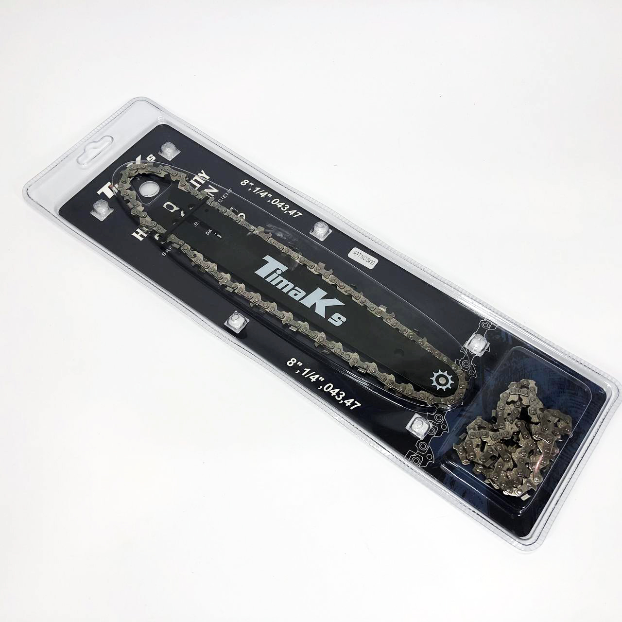 - Комплект шина 20см + 2 цепи шаг 1/4 47 зубьев для аккумуляторной пилы