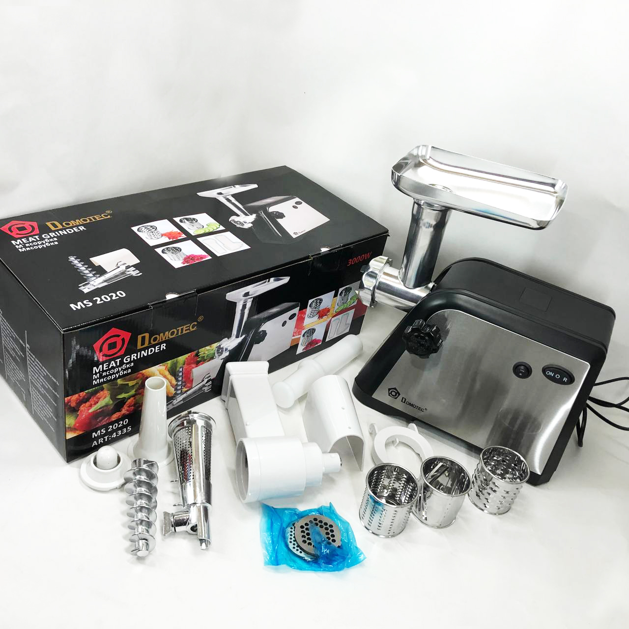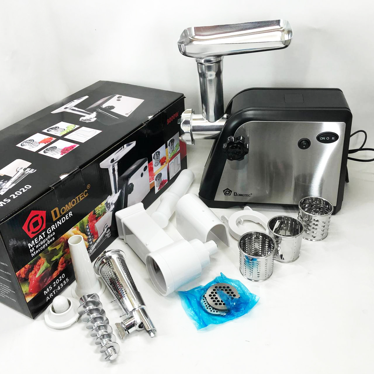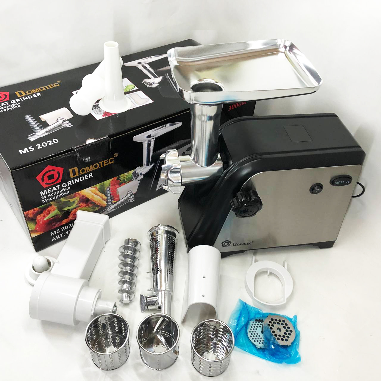 Электрическая мясорубка Domotec MS-2020 с насадкой для томатов и терками 2600 W