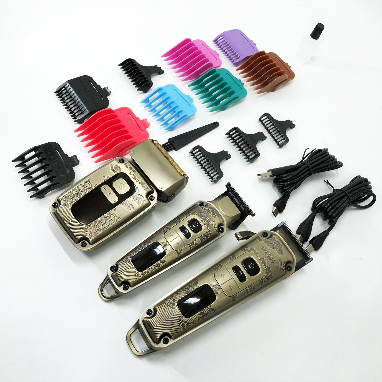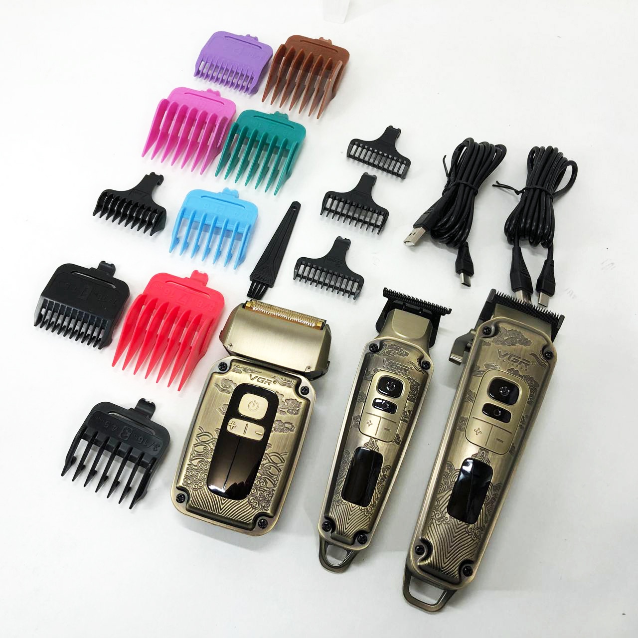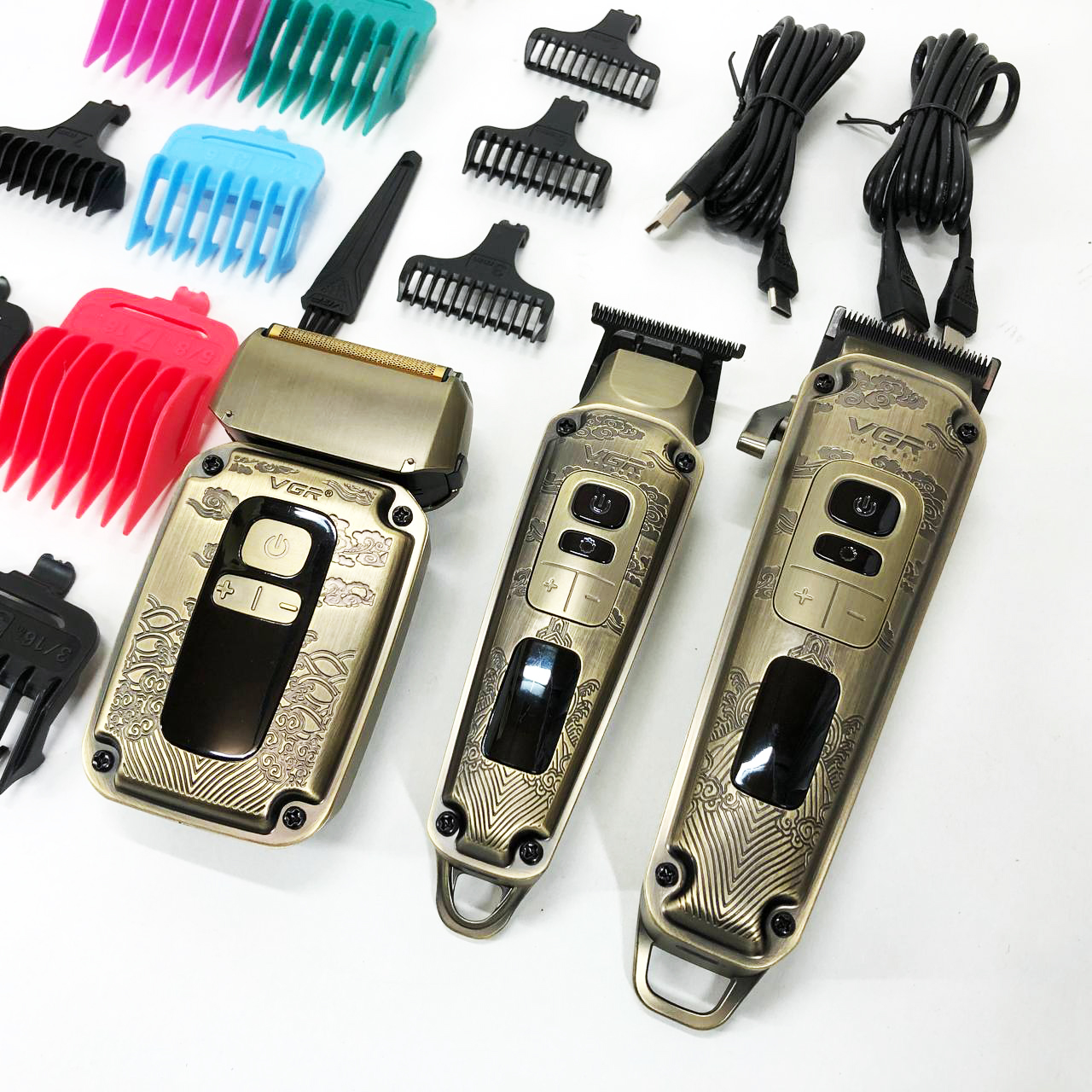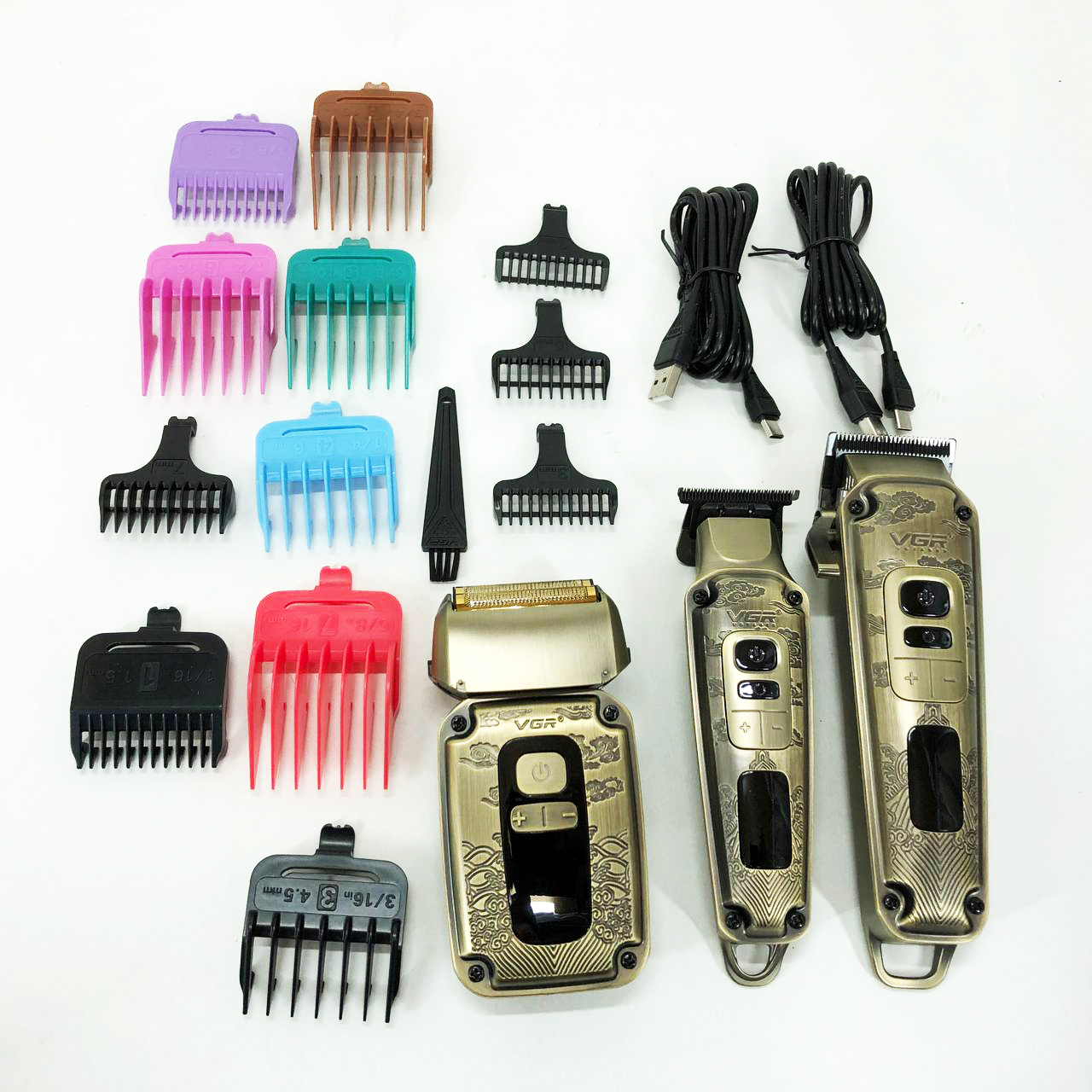 Набор VGR V-642 включает в себя три главных прибора, которыми пользуется каждый мужчина в той или иной мере, это аккумуляторные машинка и триммер для стрижки бороды и волос со сменными насадками и аккумуляторный электрический шейвер для идеальной гладкости кожи, что значительно облегчит жизнь каждому мужчине.