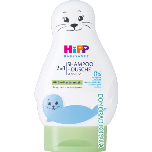 М'який гель для душу 2 в 1 з шампунем для чутливої ​​шкіри HiPP Babysanft дбайливо очищає чутливу дитячу шкіру та тонке волосся. Він нейтральний для шкіри і, звичайно, не щипає очі. Тонке волосся також стає легше розчісуватися і без смикування.