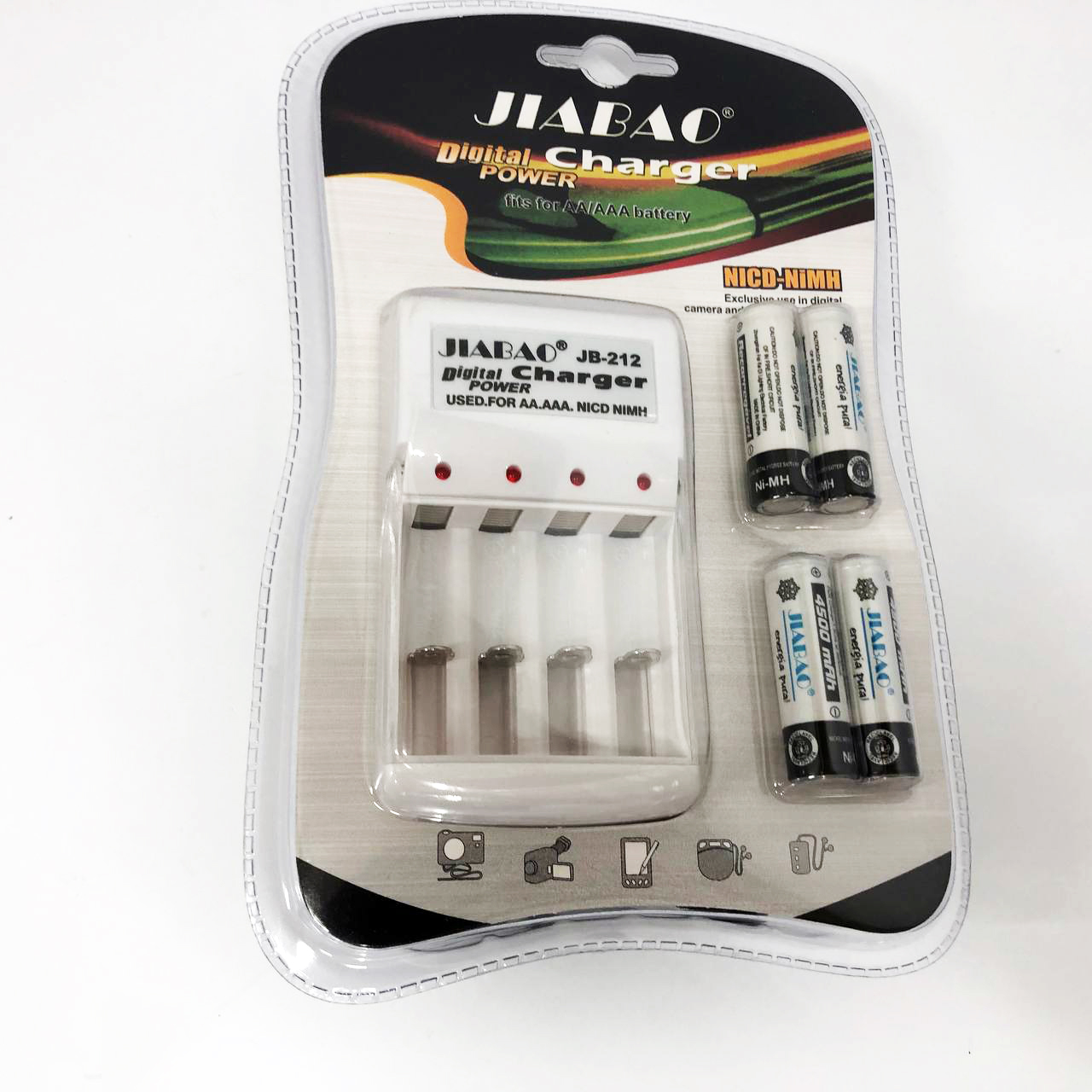 Зарядное устройство для аккумуляторов АА и ААА, Jiabao JB-212 + 4 аккумулятора ААА