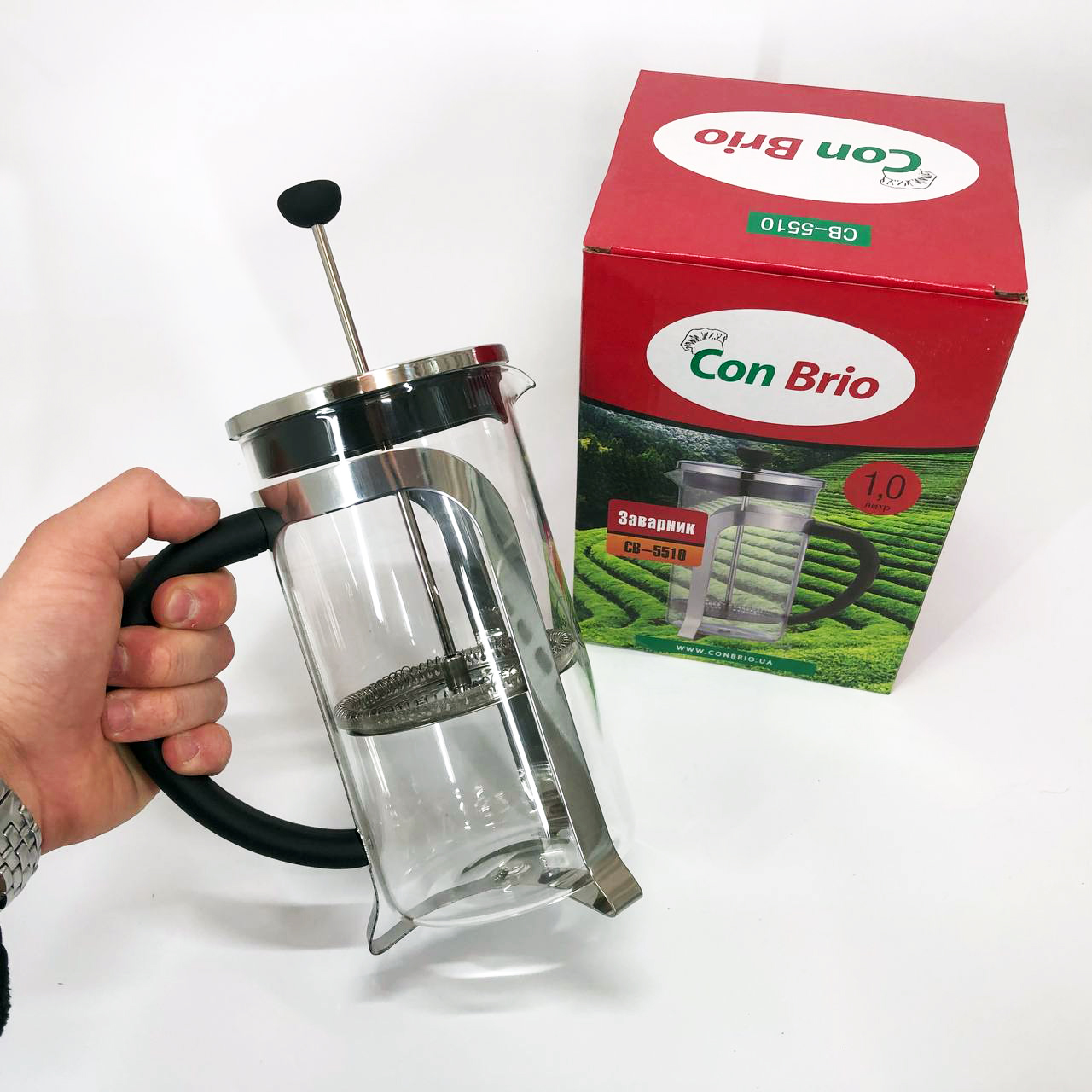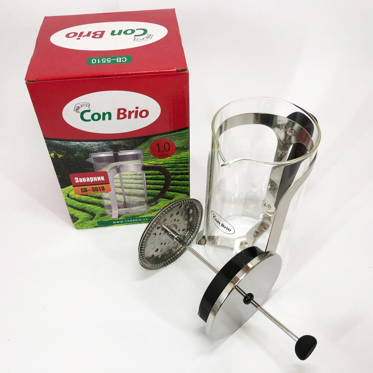 Френч-пресс Con Brio 1000 мл стекло нержавейка CB-5510, Чайник для заваривания трав, Заварник прозрачный