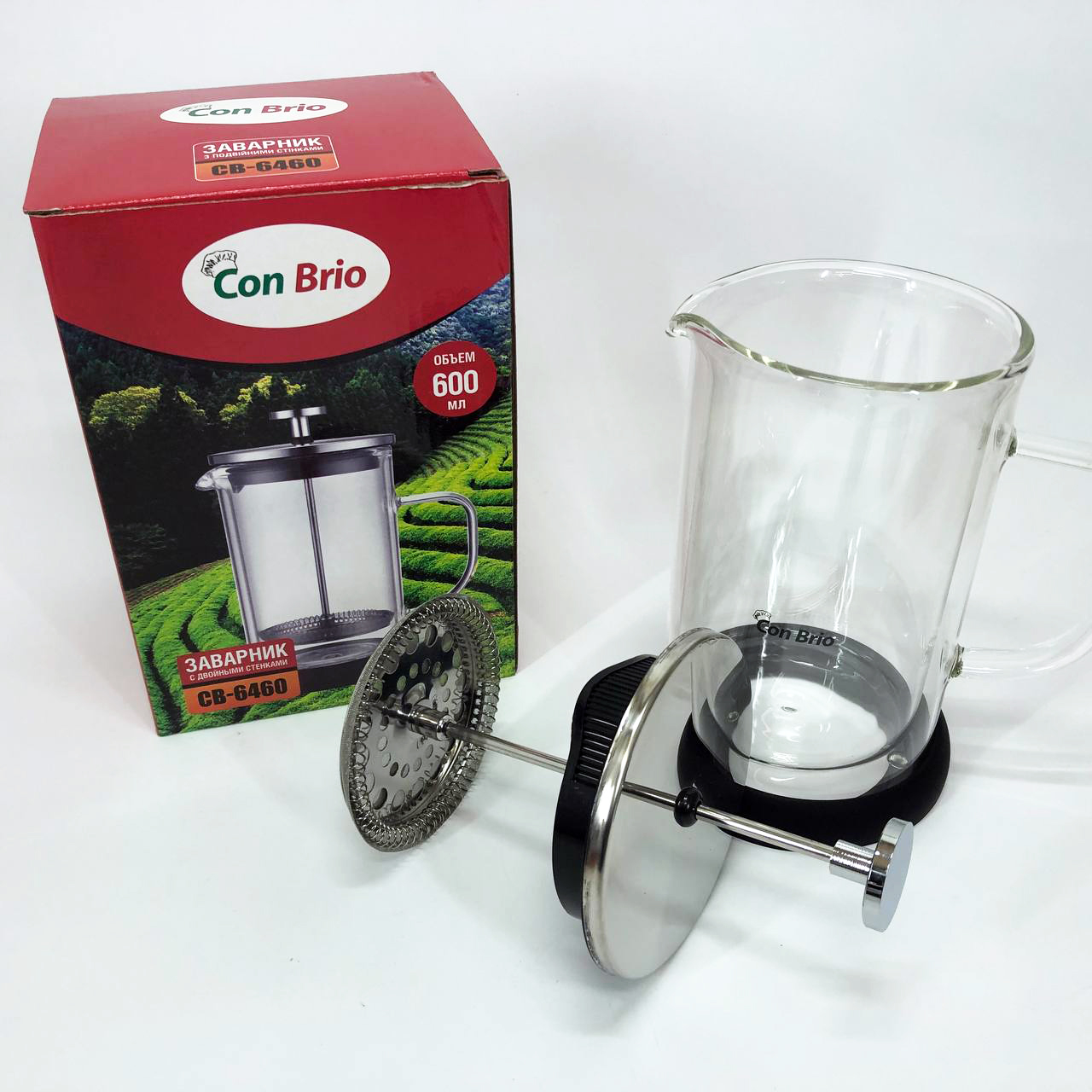 Френч-пресс с двойными стенками Con Brio CB-6460 600 мл, Френч-пресс для крепкого кофе китайский заварник