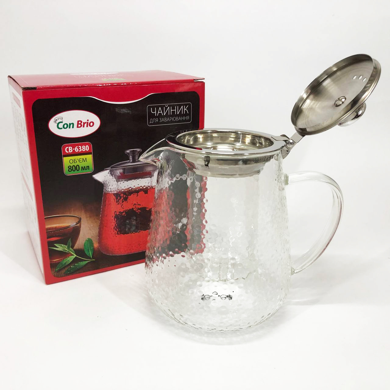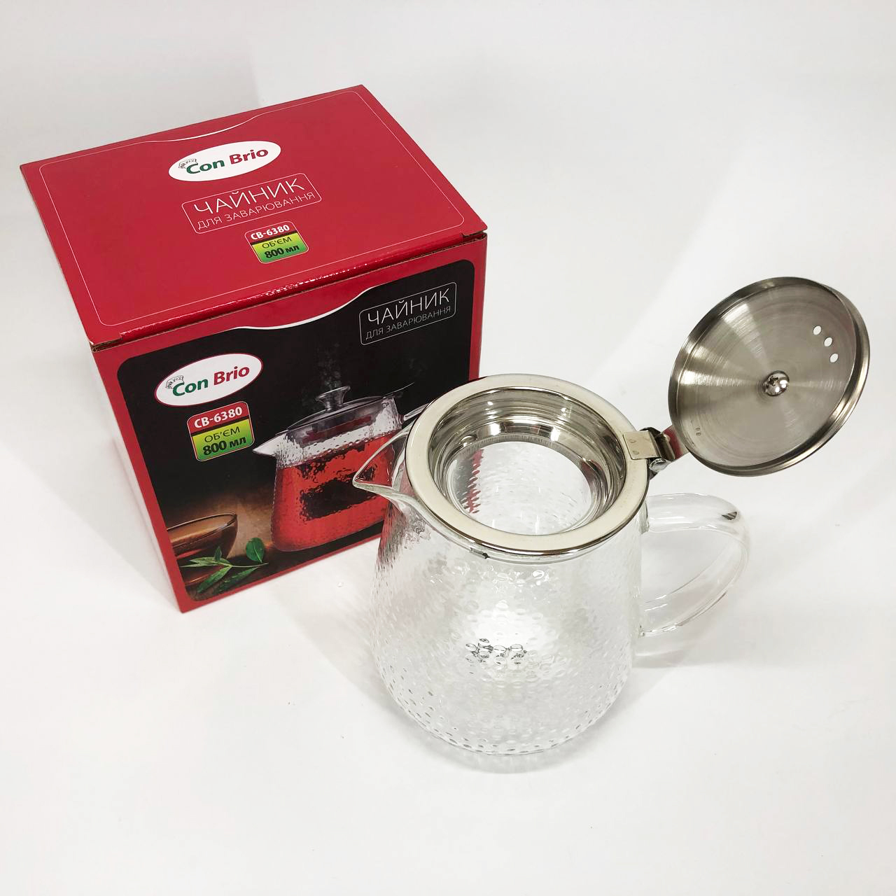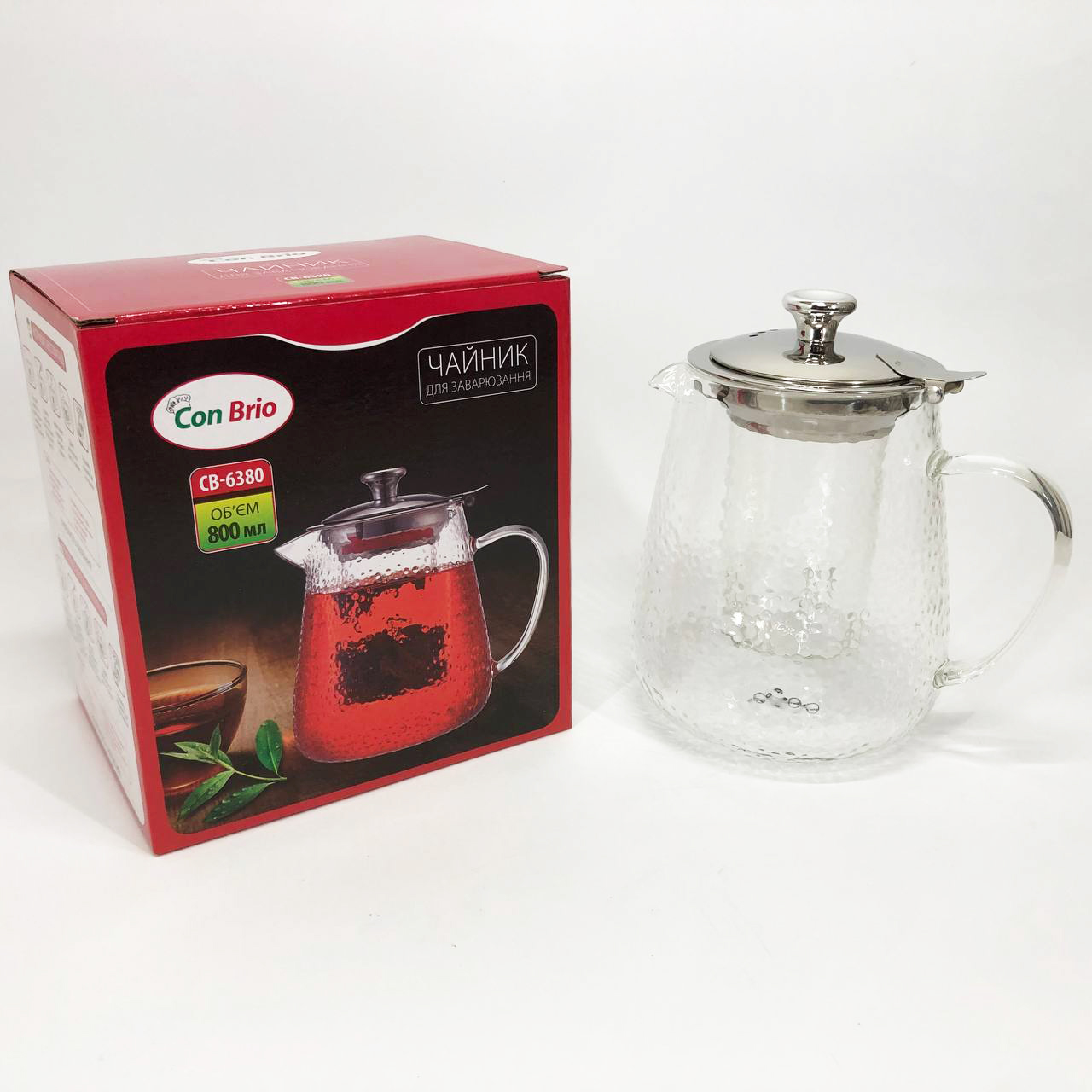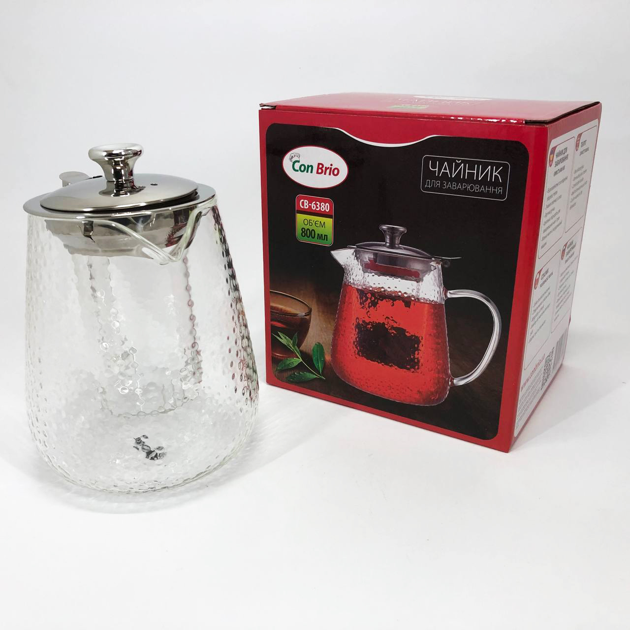 Чайник заварочный заварник для чая Con Brio CB-6380 800 мл, Стильный стеклянный заварочный чайник