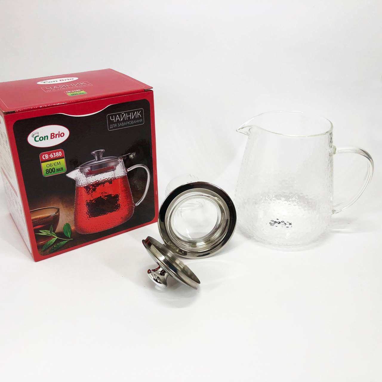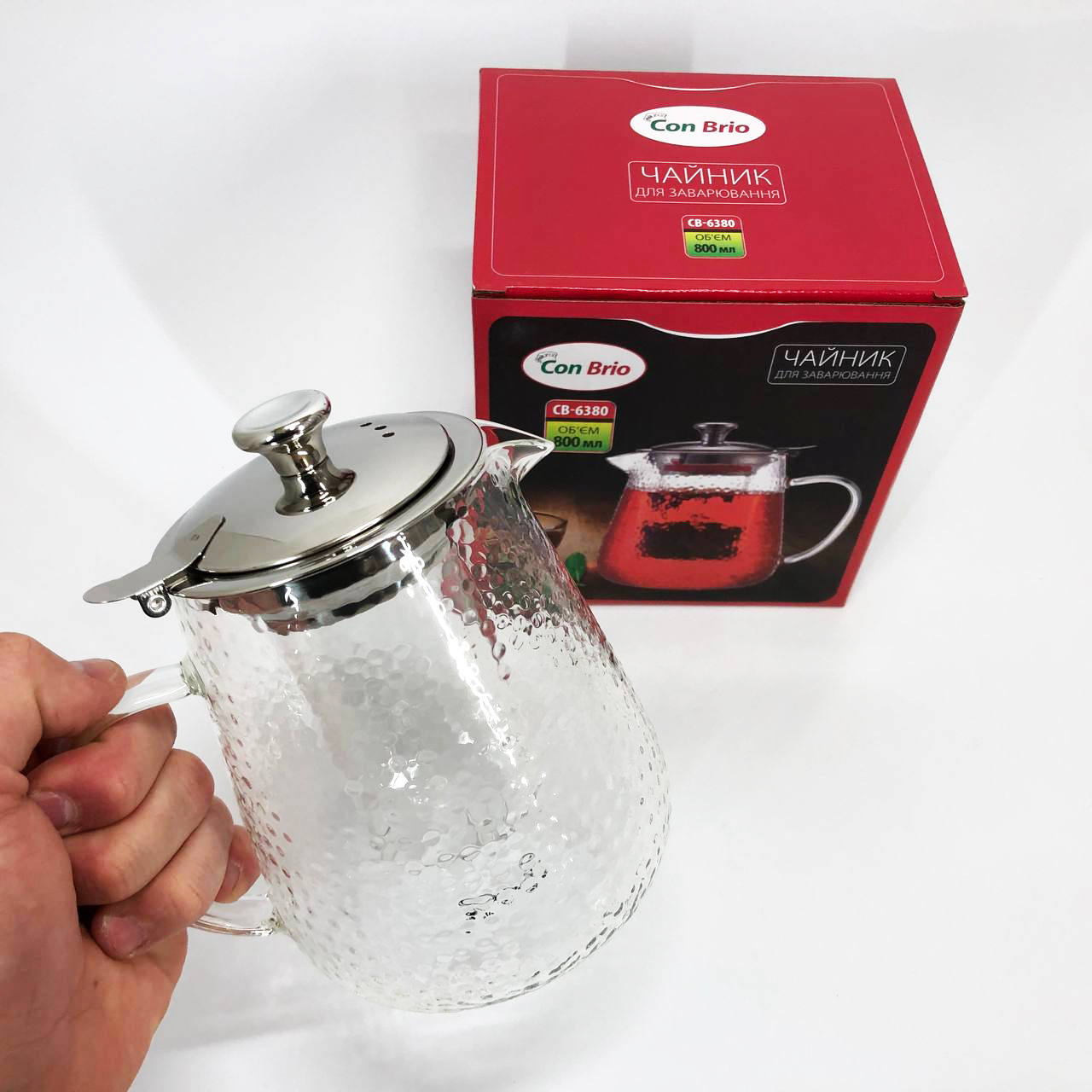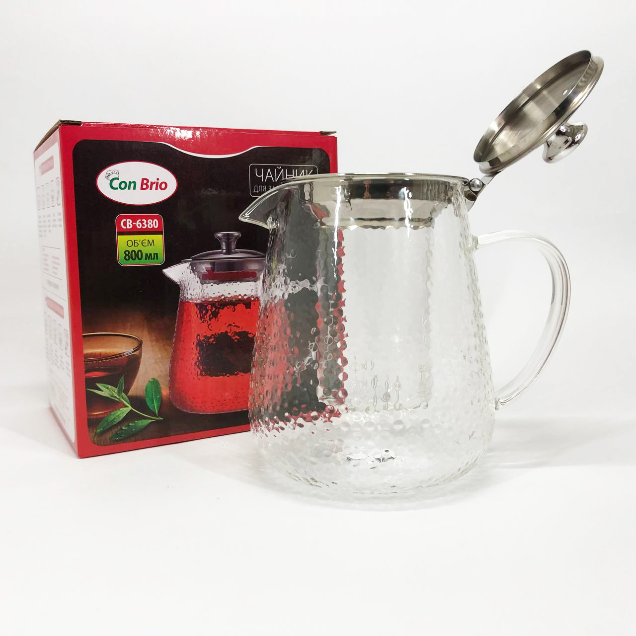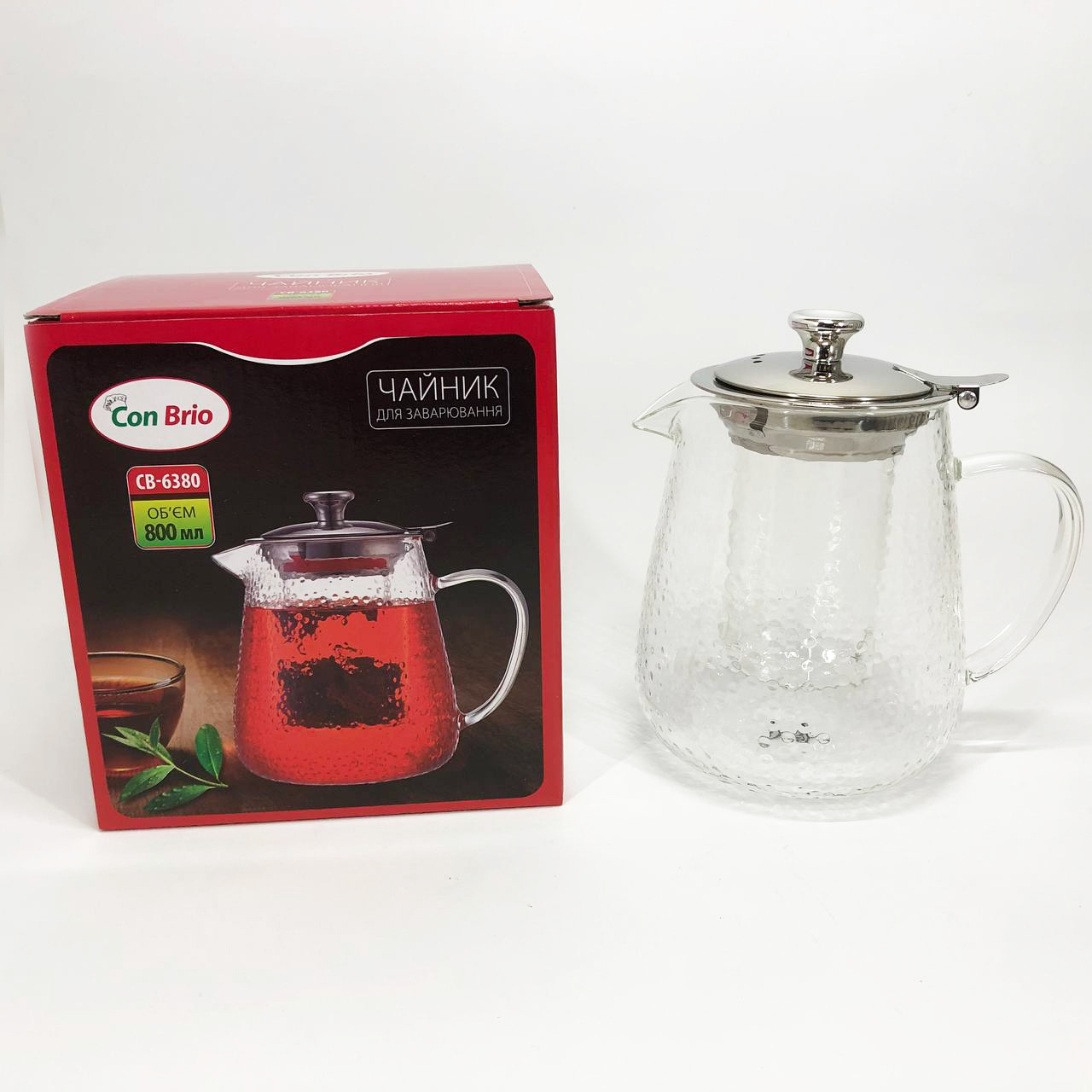 Чайник заварочный заварник для чая Con Brio CB-6380 800 мл, Стильный стеклянный заварочный чайник