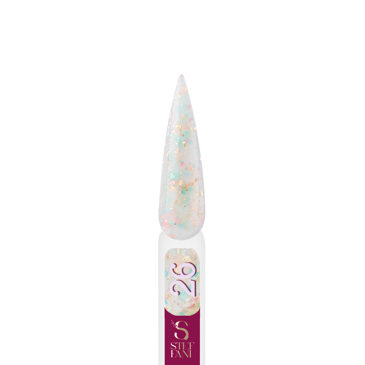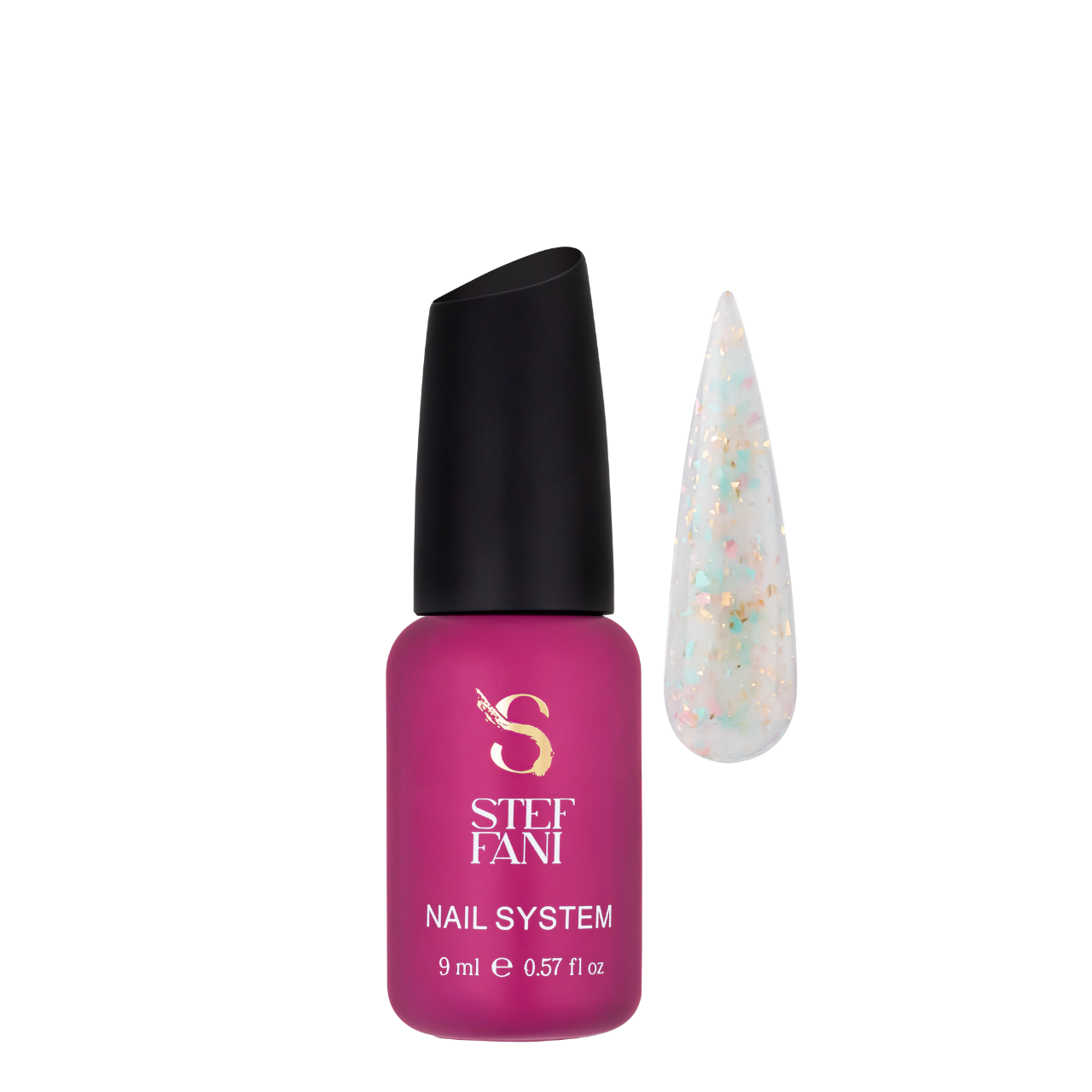 База камуфлююча для гель-лаку Steffani Cover Base 9 мл, 26 Молочна із золотистими рожевими бірюзовими пластівцями потали