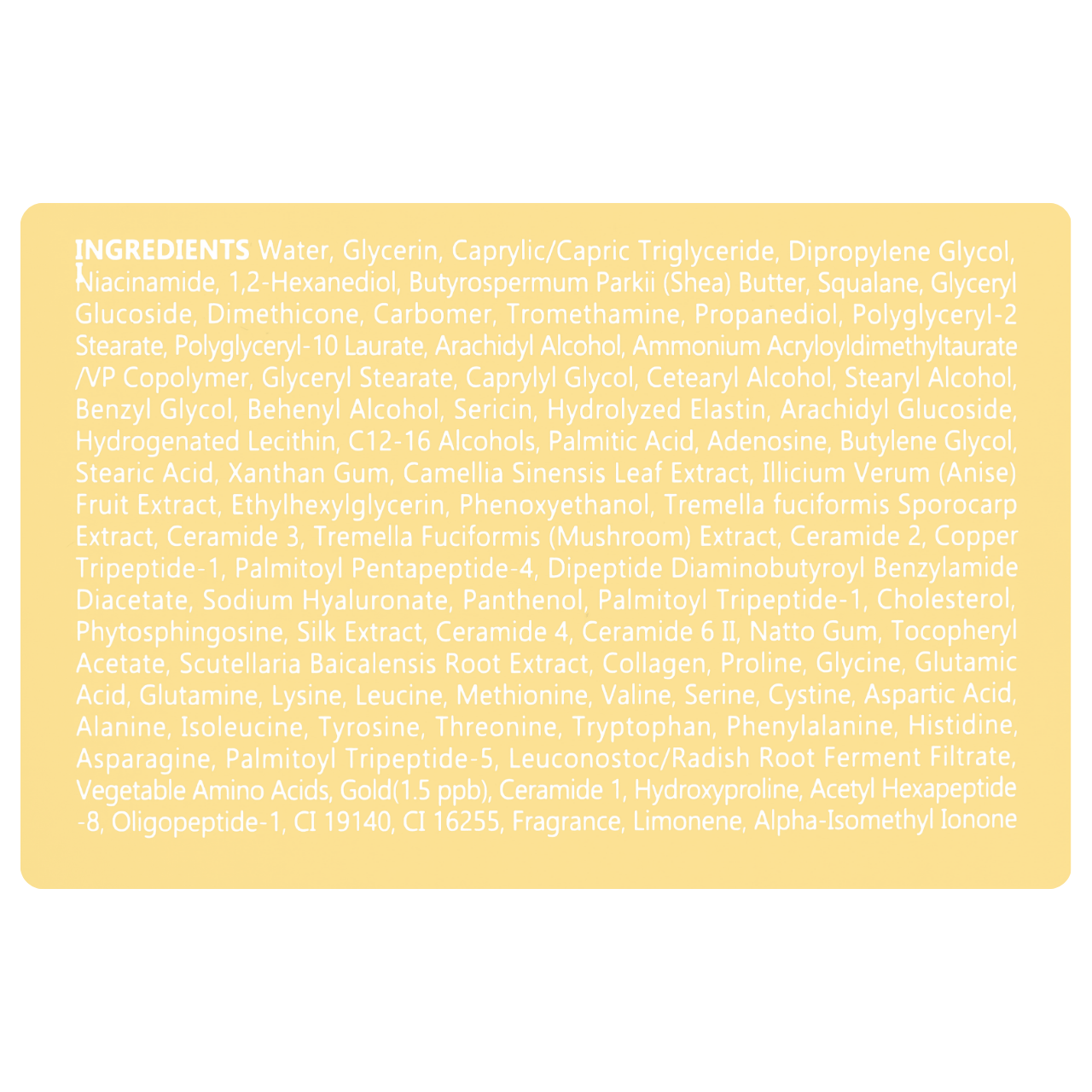 золотий екстракт: омолоджує, усуває сліди часу, надає сяйва та еластичності.Результат після застосування:згладження зморщок;