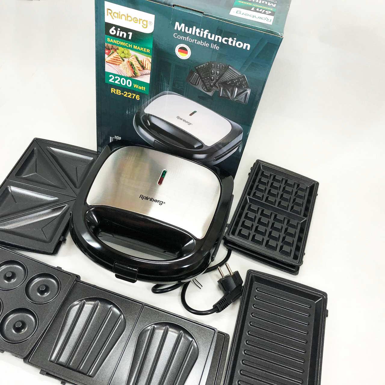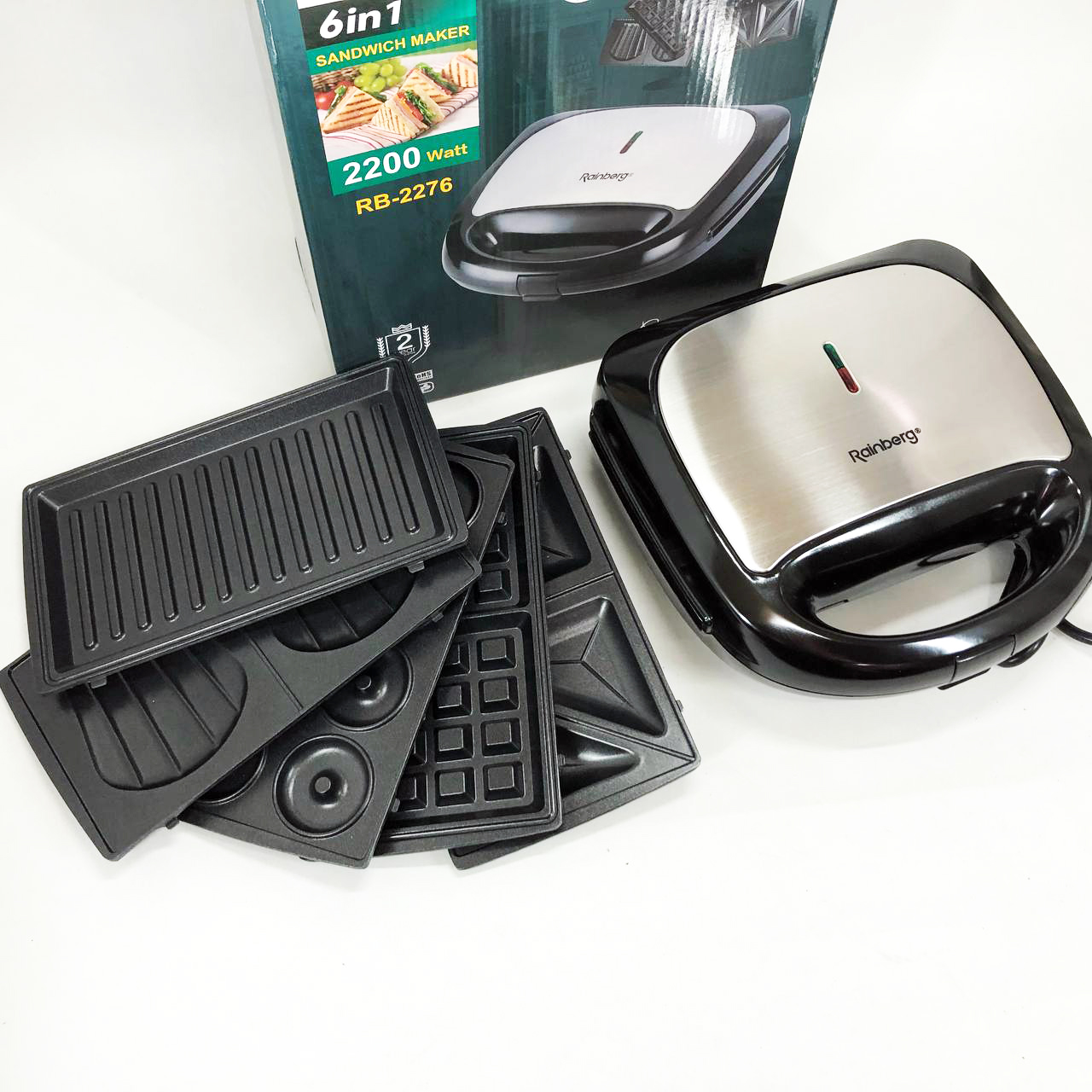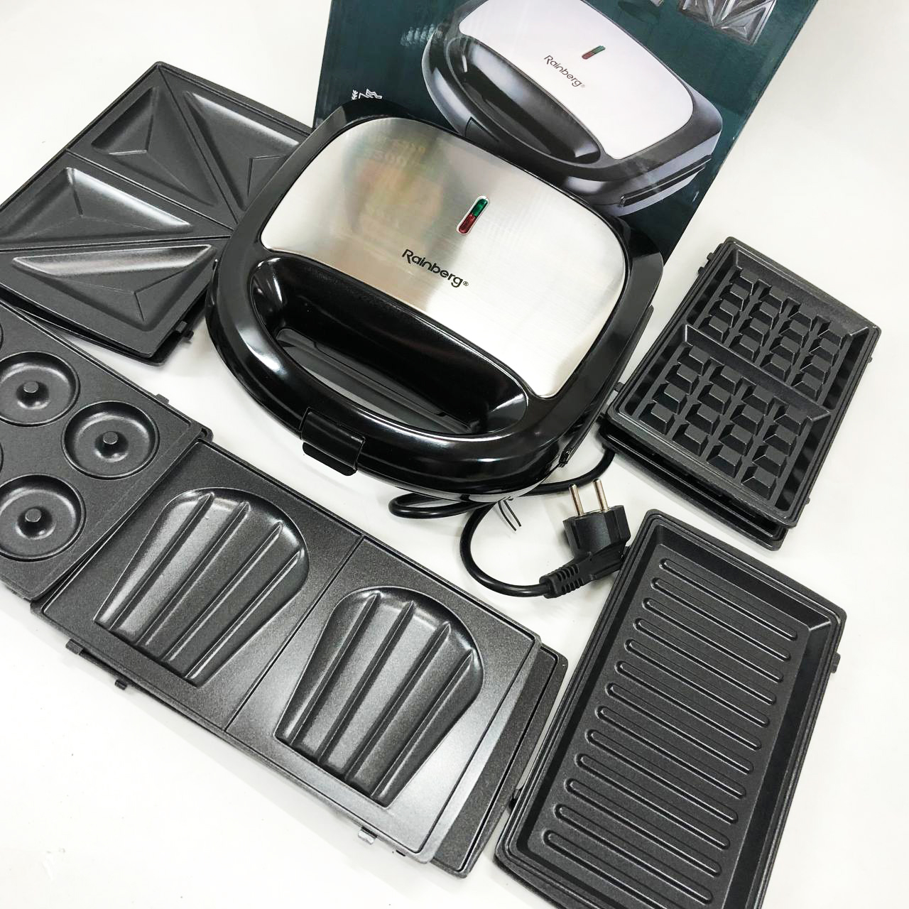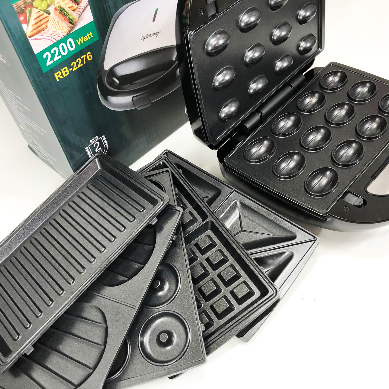 Мультимейкер бутербродница 6 в 1 Rainberg RB-2276 съемные формы с антипригарным покрытием 2200 Вт