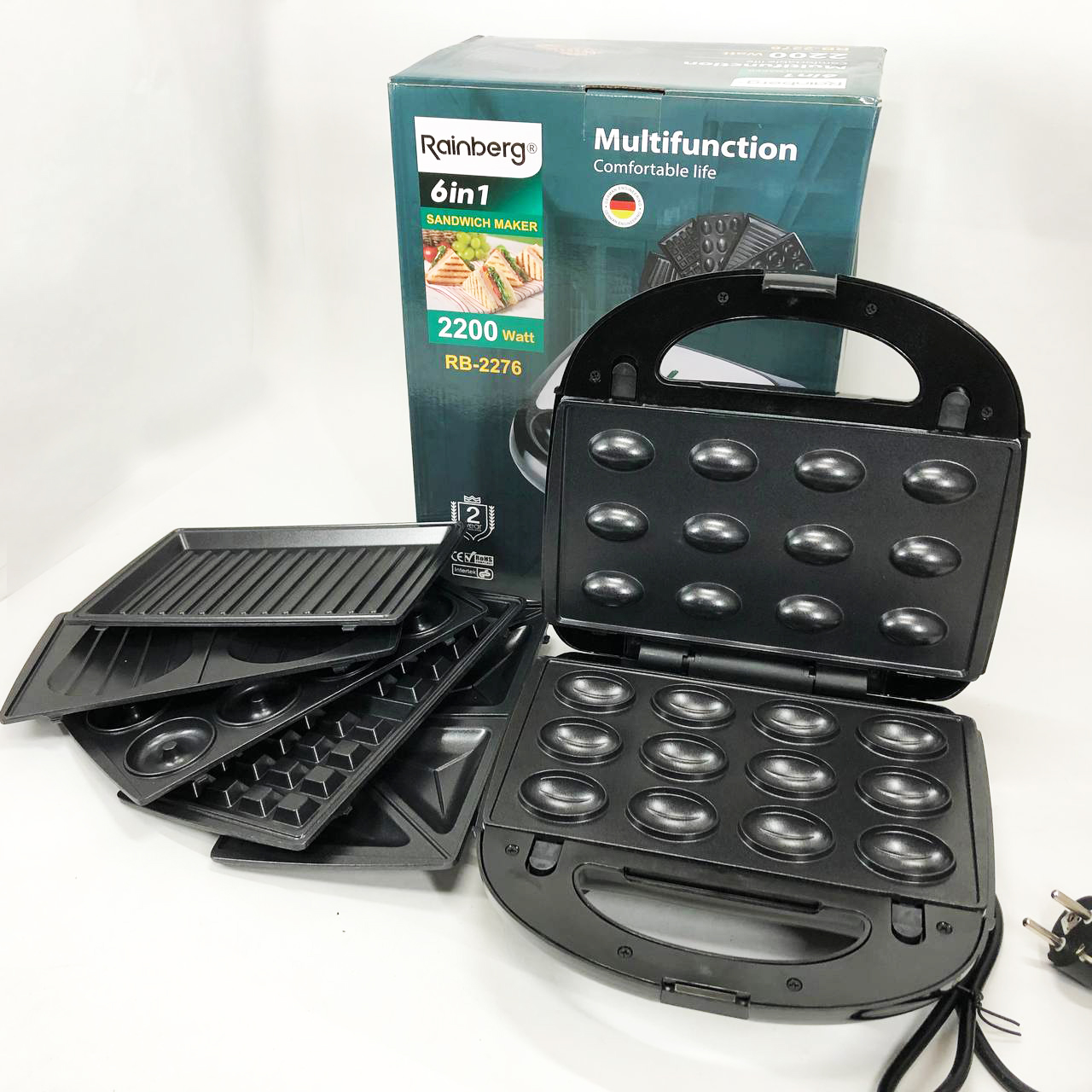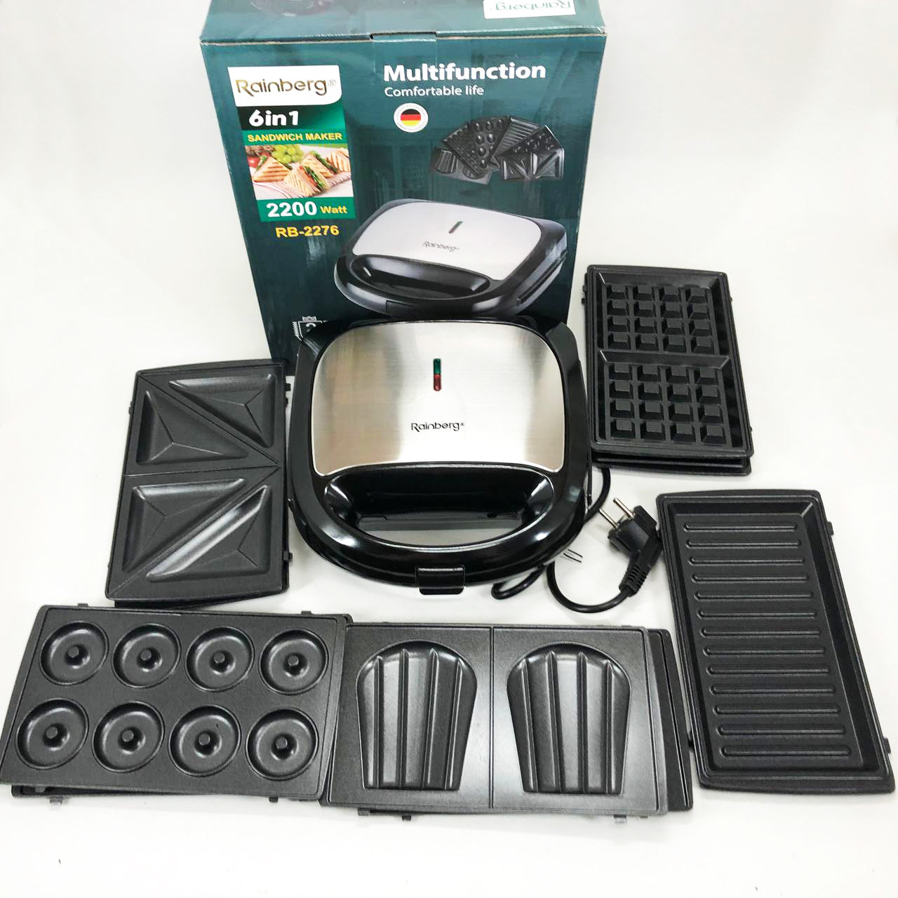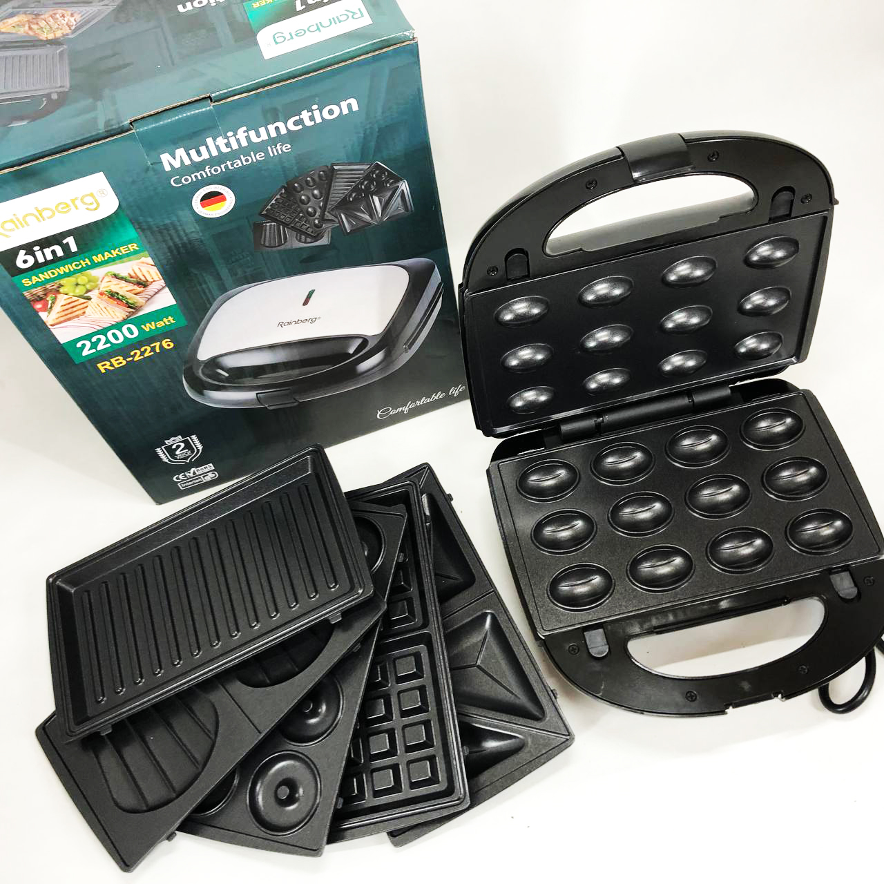 Мультимейкер бутербродница 6 в 1 Rainberg RB-2276 съемные формы с антипригарным покрытием 2200 Вт