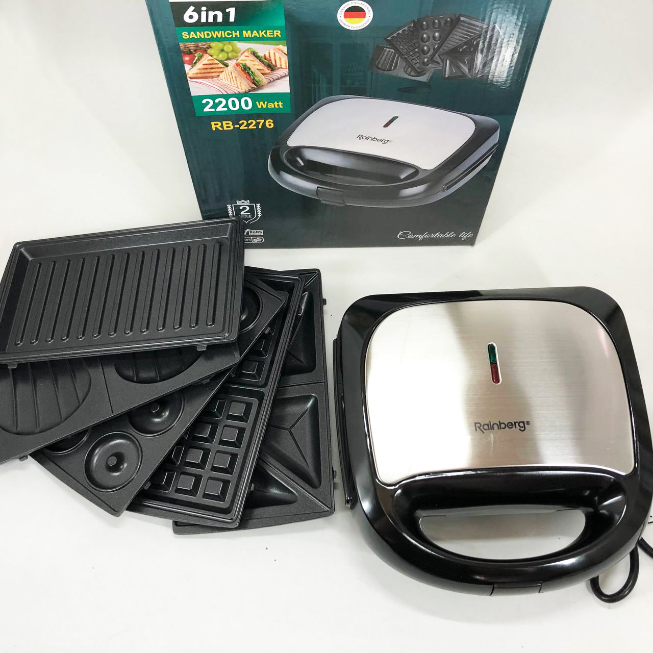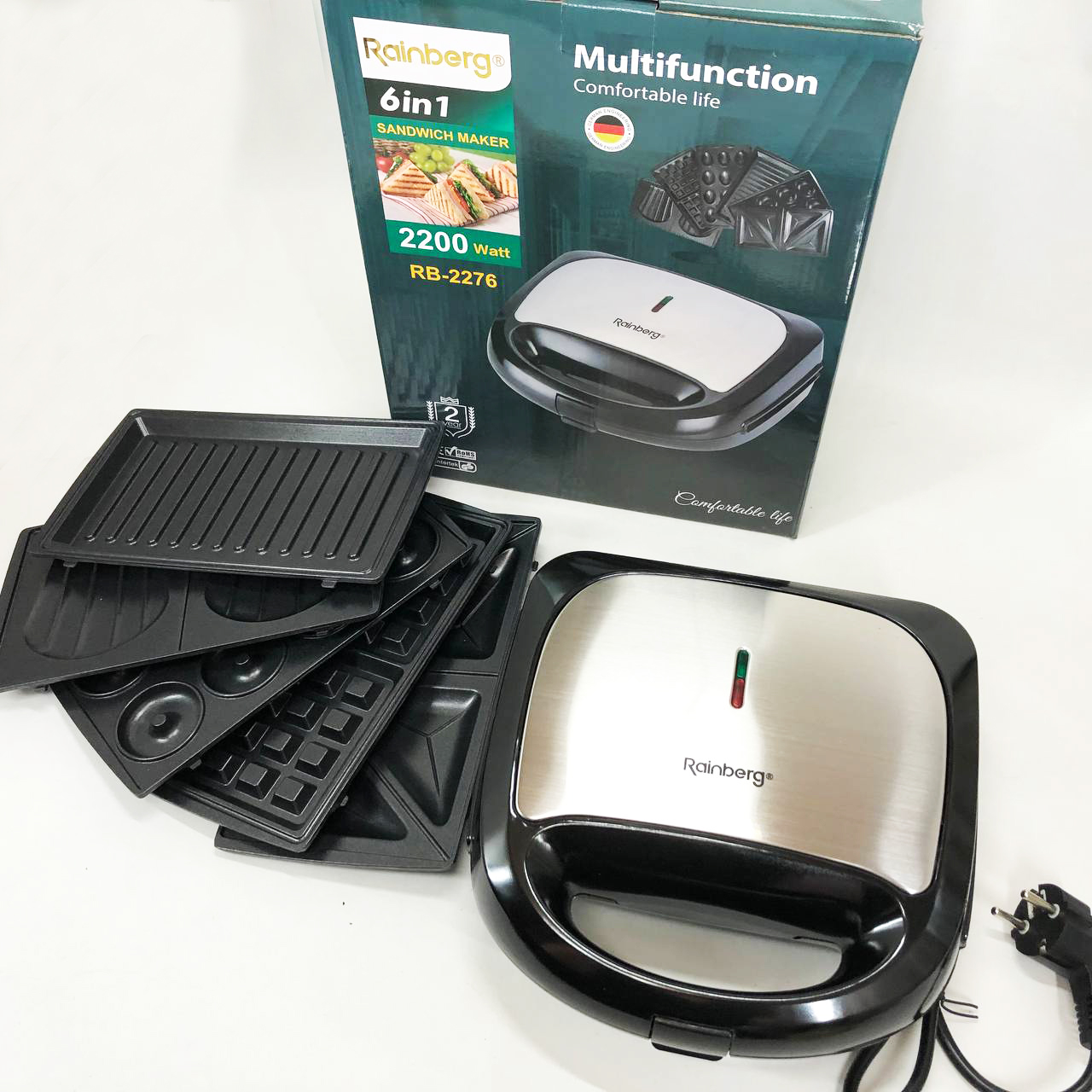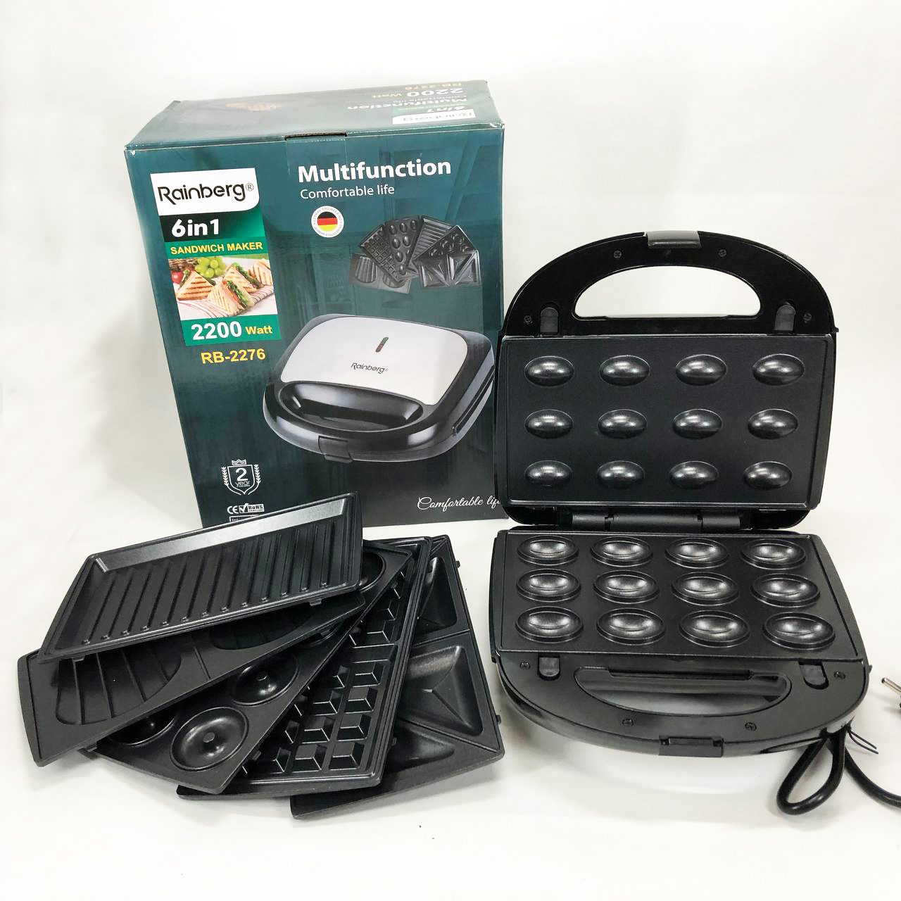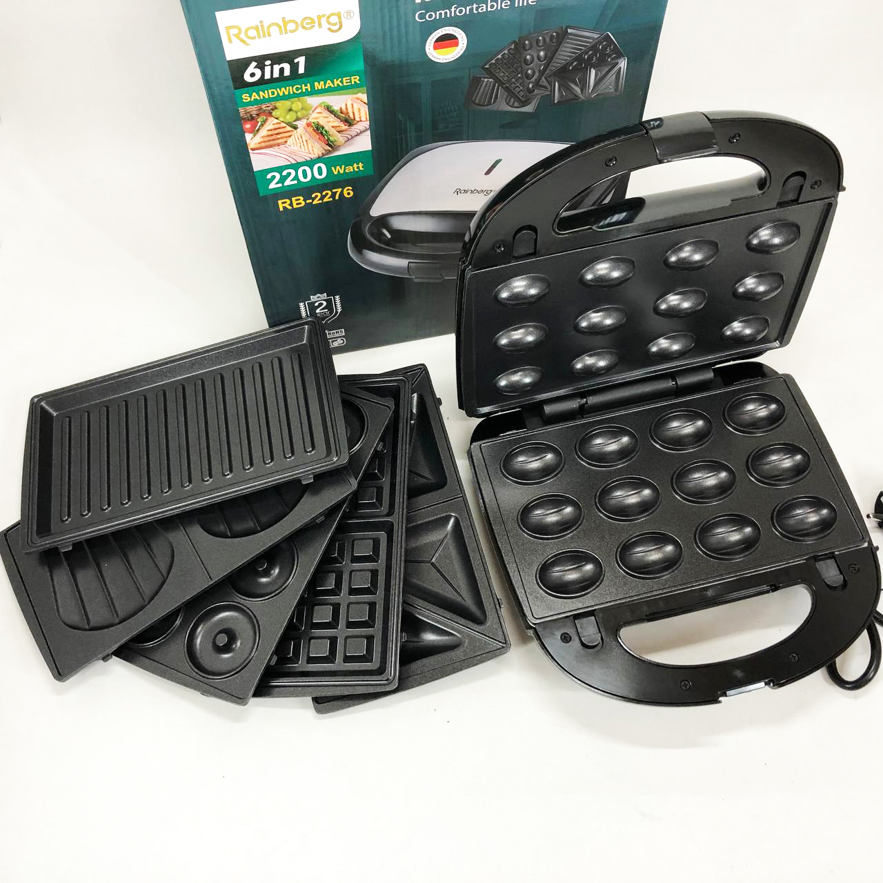 Мультимейкер бутербродница 6 в 1 Rainberg RB-2276 съемные формы с антипригарным покрытием 2200 Вт