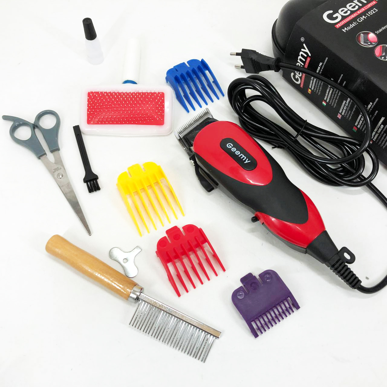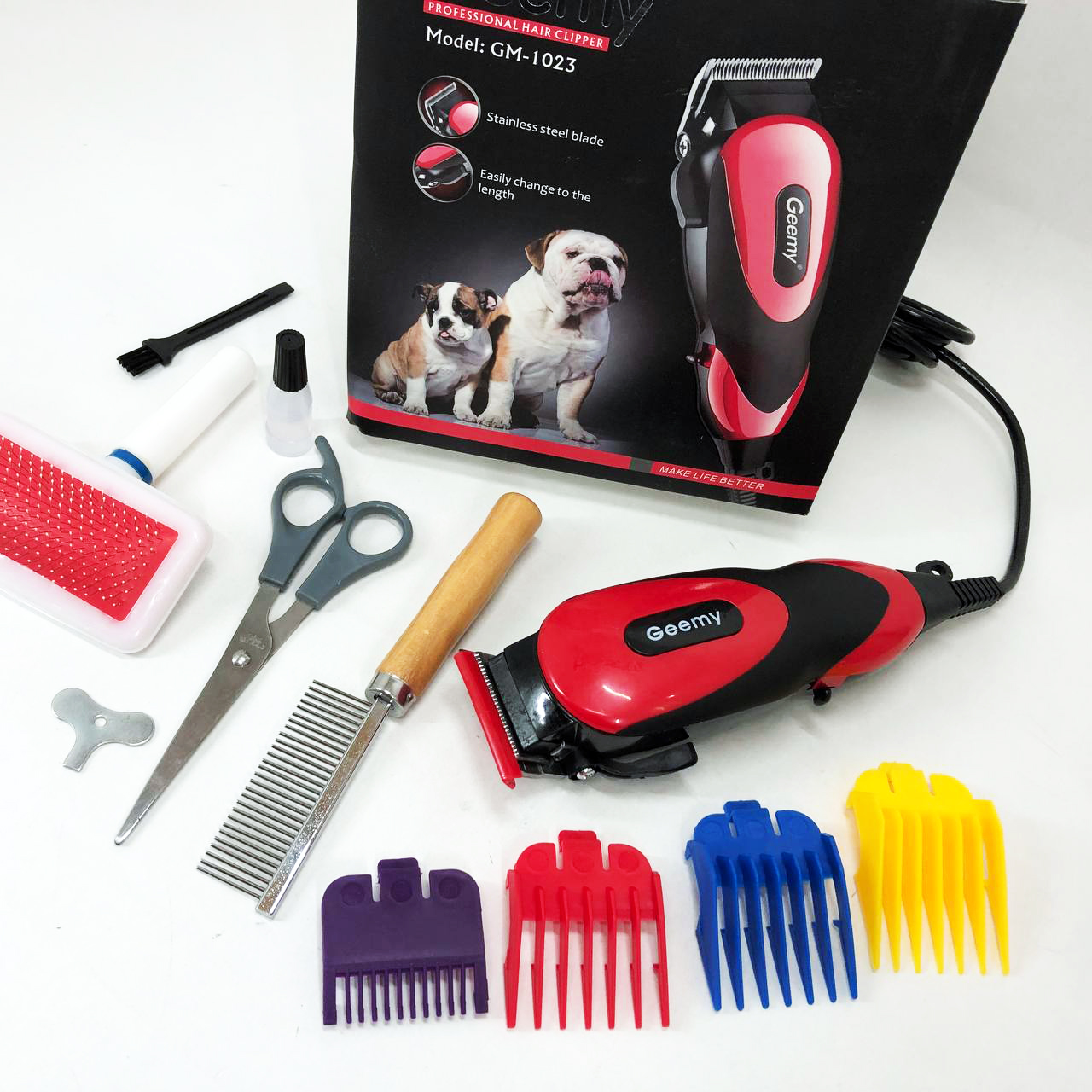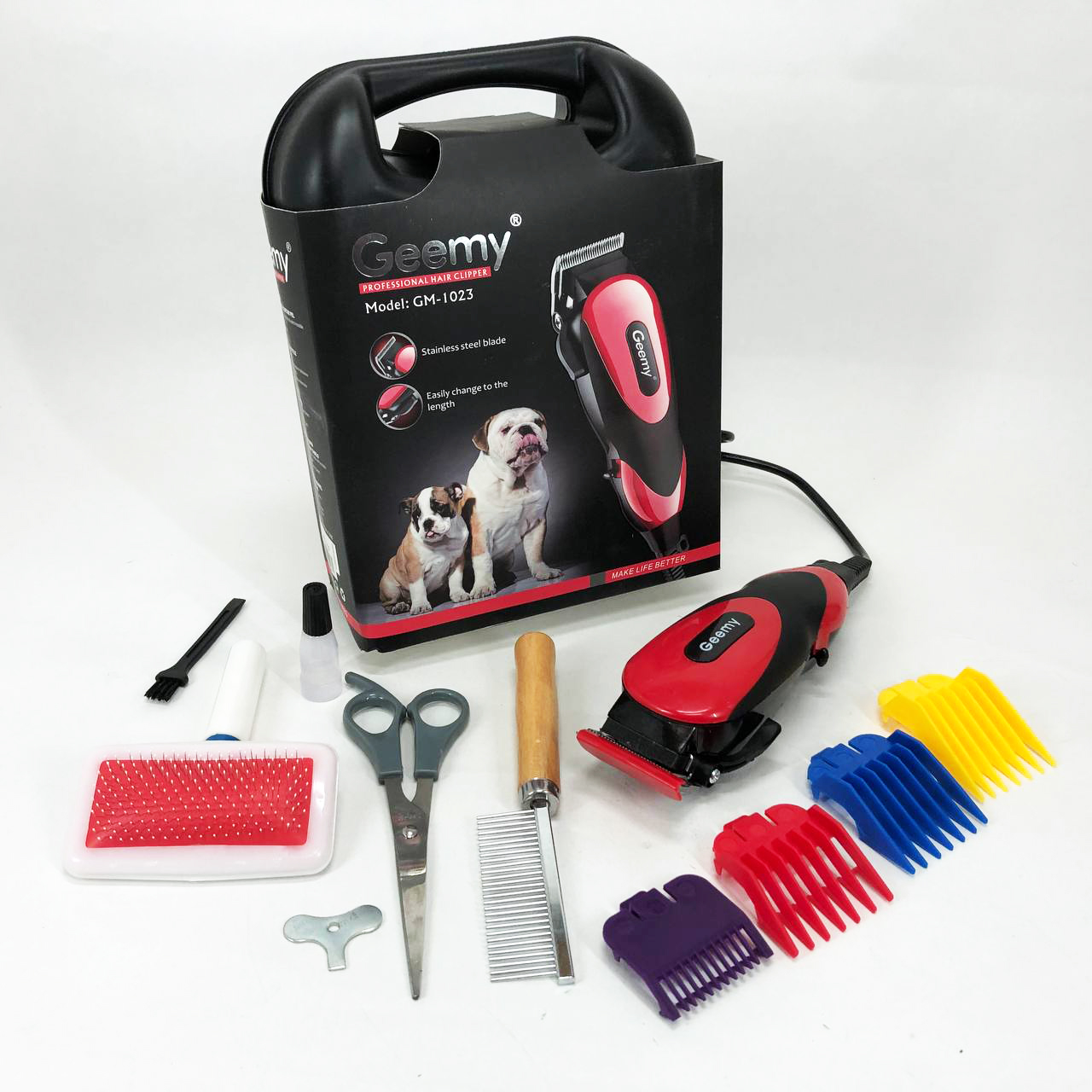 Машинка Gemei GM-1023 для стрижки животных с 4 насадками для любого типа шерсти + ножницы и расческа-гребешок