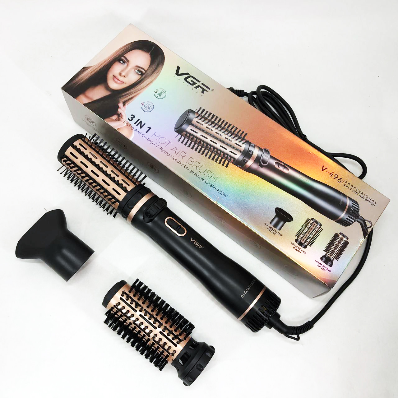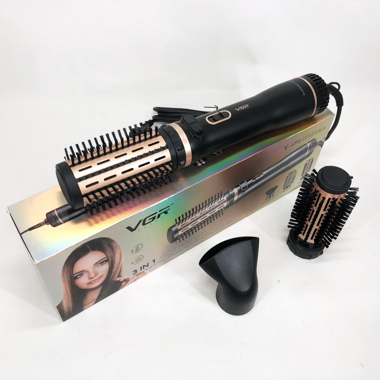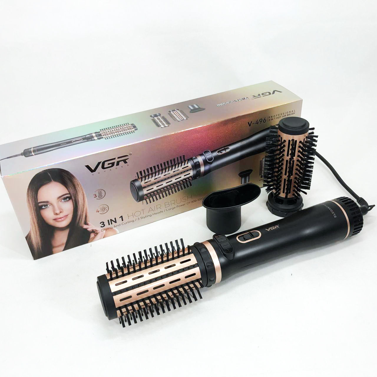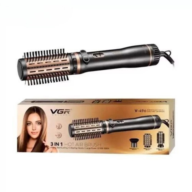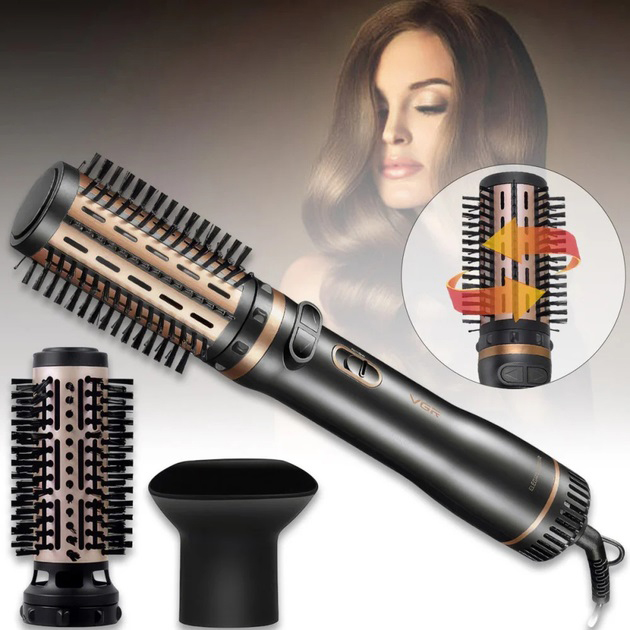 Электрическая фен-щетка стайлер для укладки волос 1000 Вт 3 режима VGR V-496 3 насадки