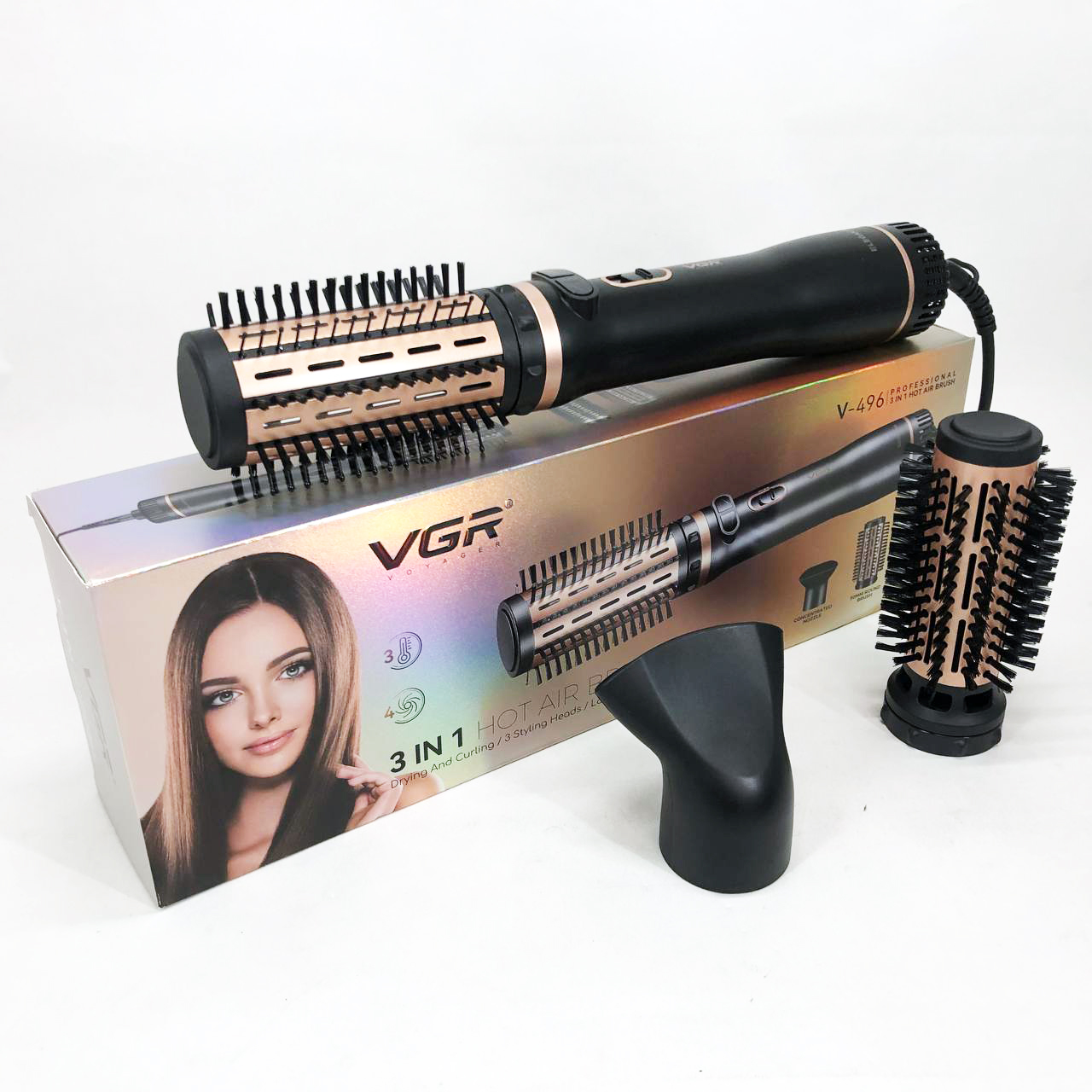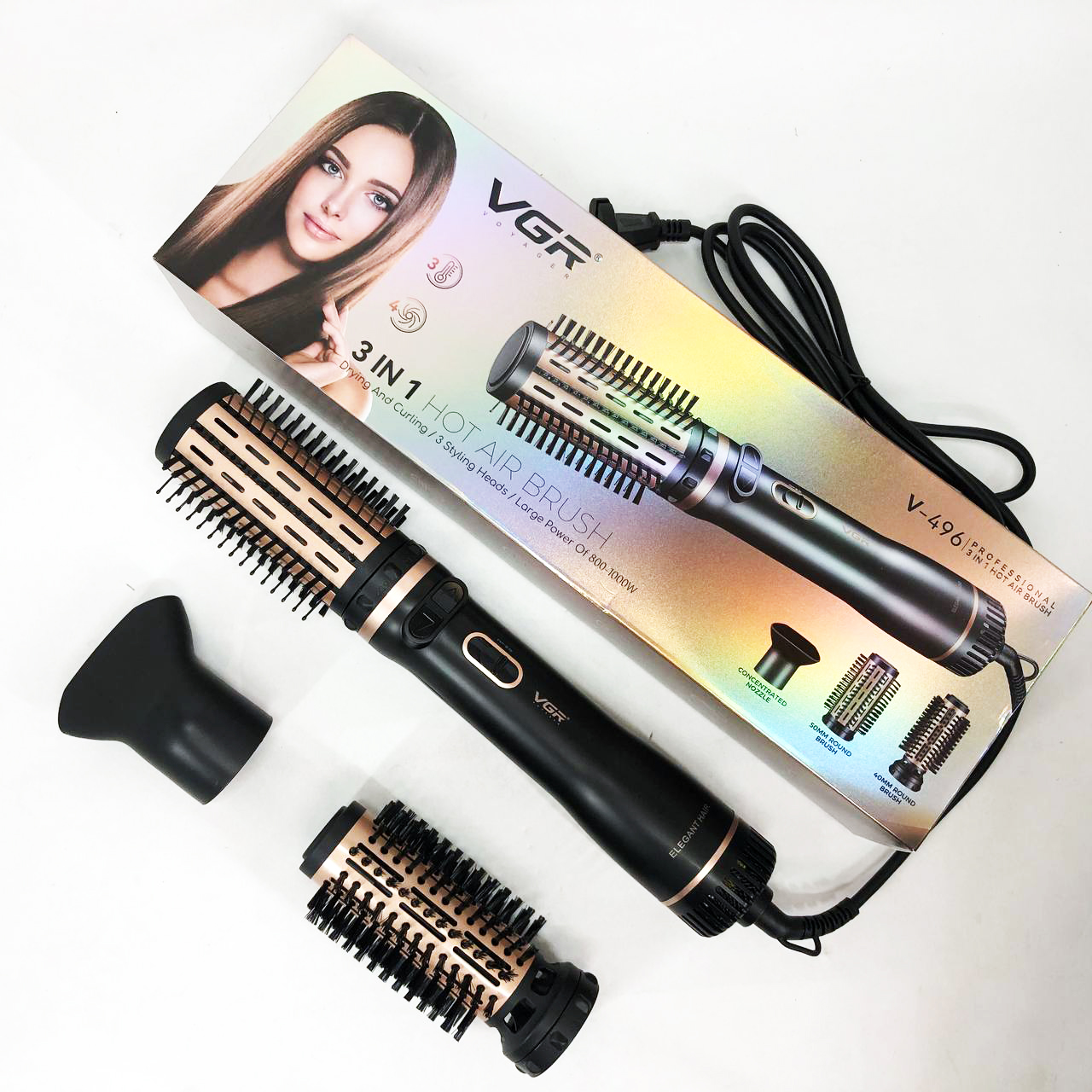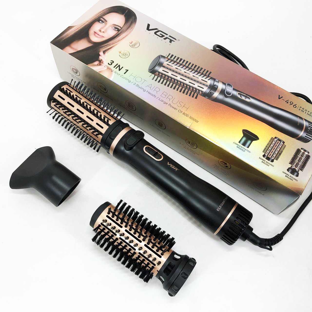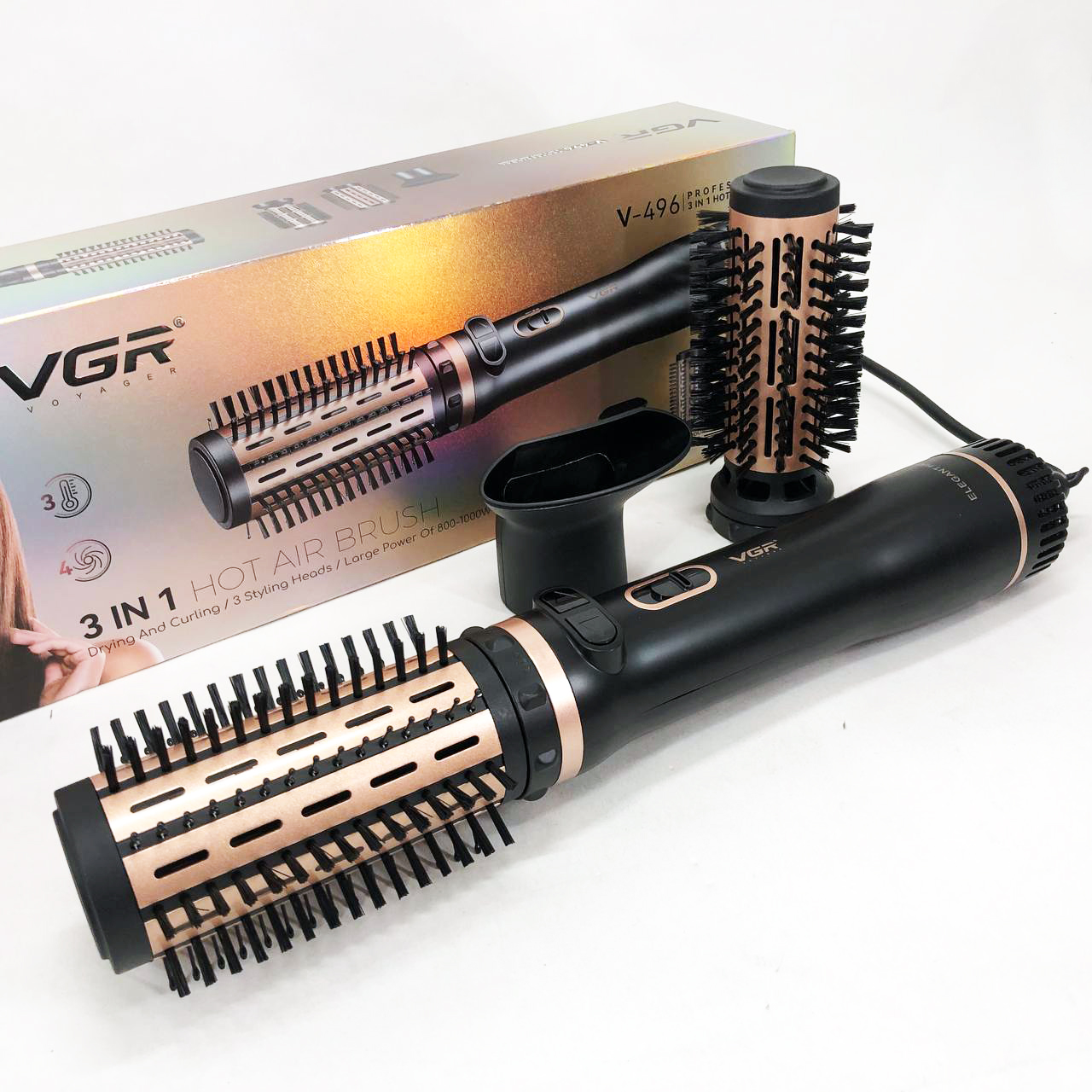 Электрическая фен-щетка стайлер для укладки волос 1000 Вт 3 режима VGR V-496 3 насадки