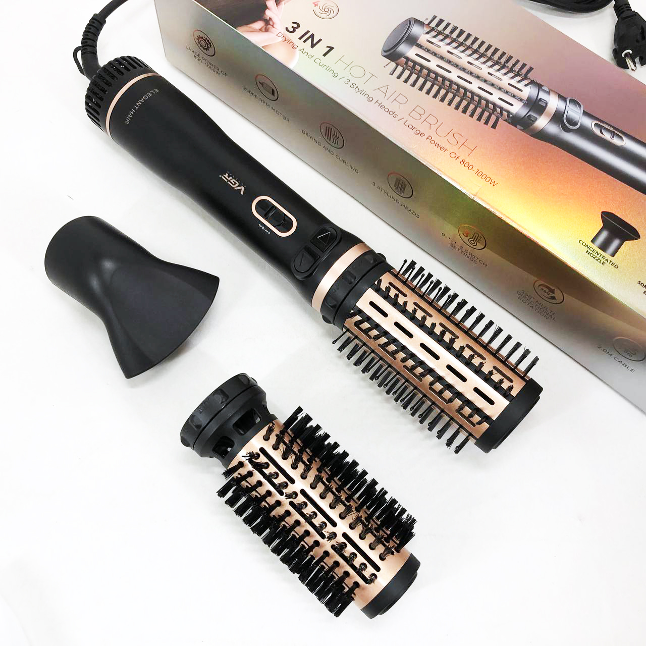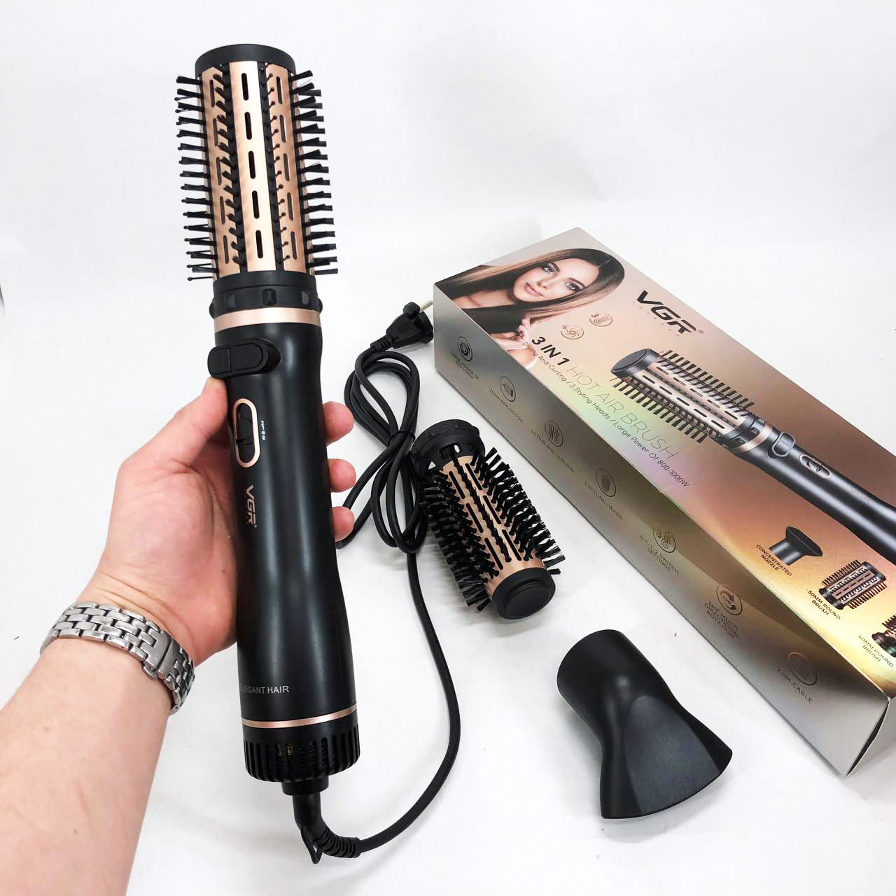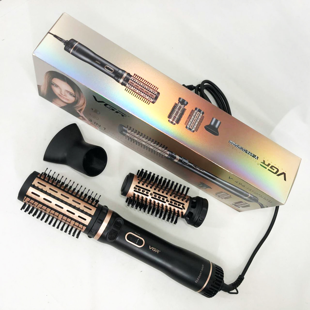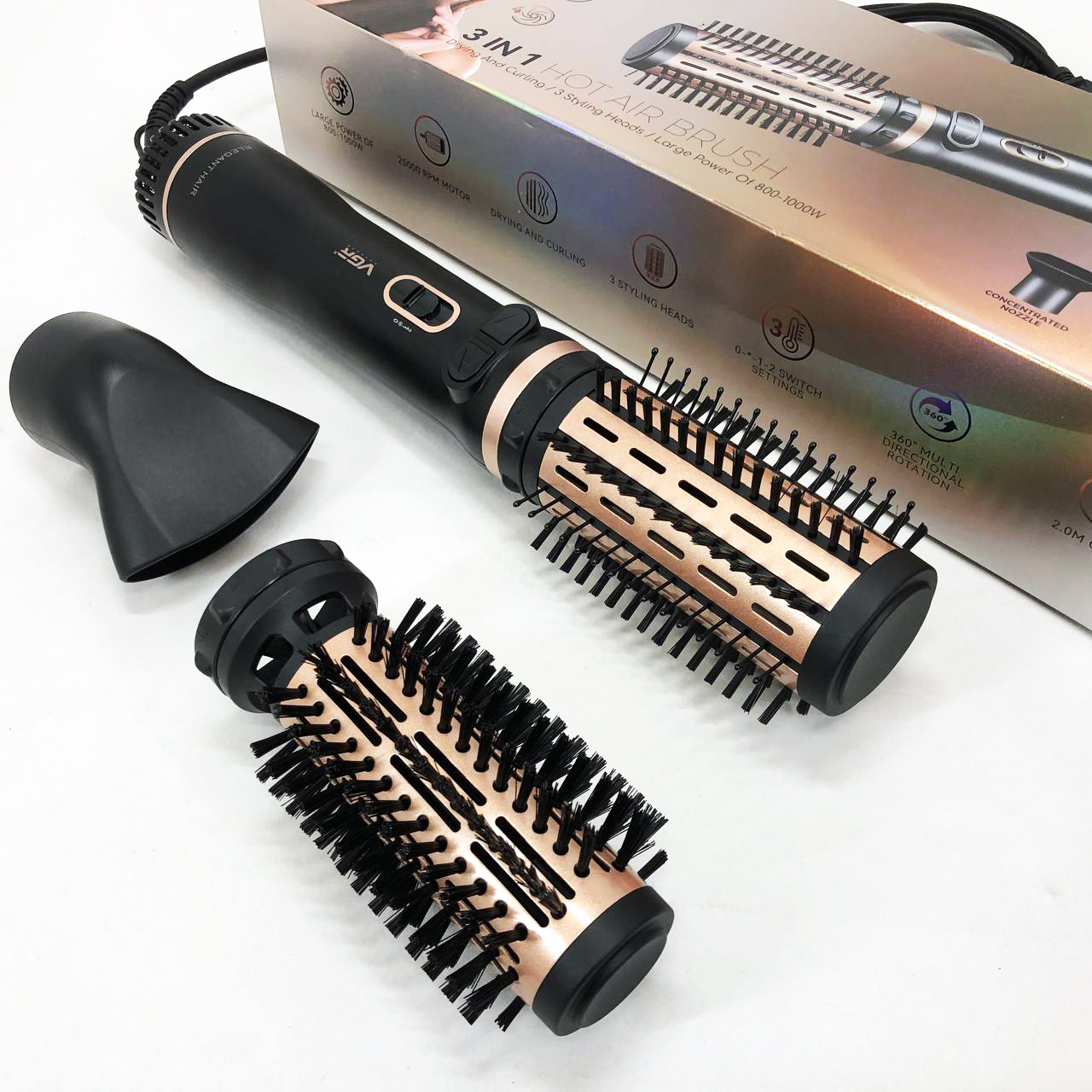 Электрическая фен-щетка стайлер для укладки волос 1000 Вт 3 режима VGR V-496 3 насадки