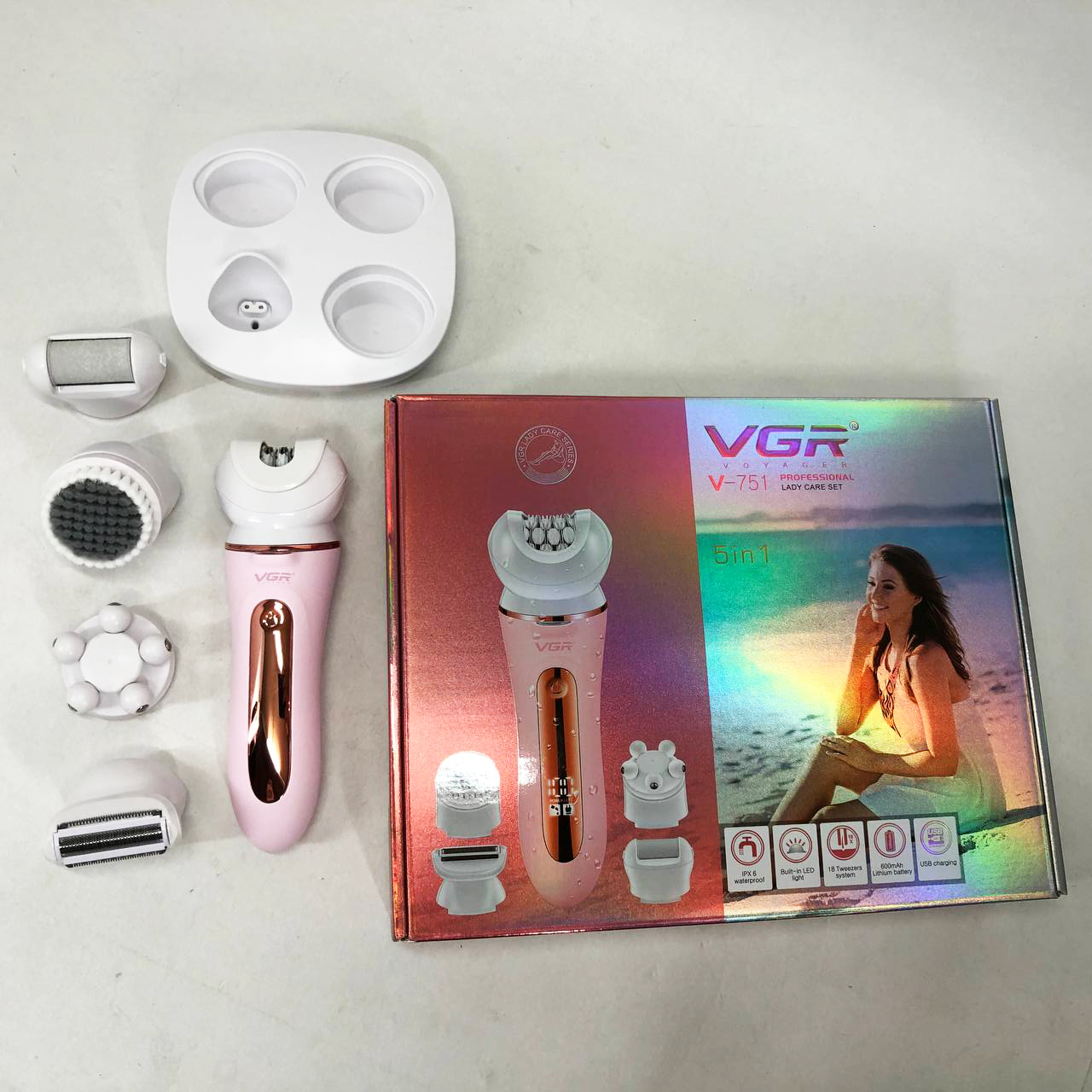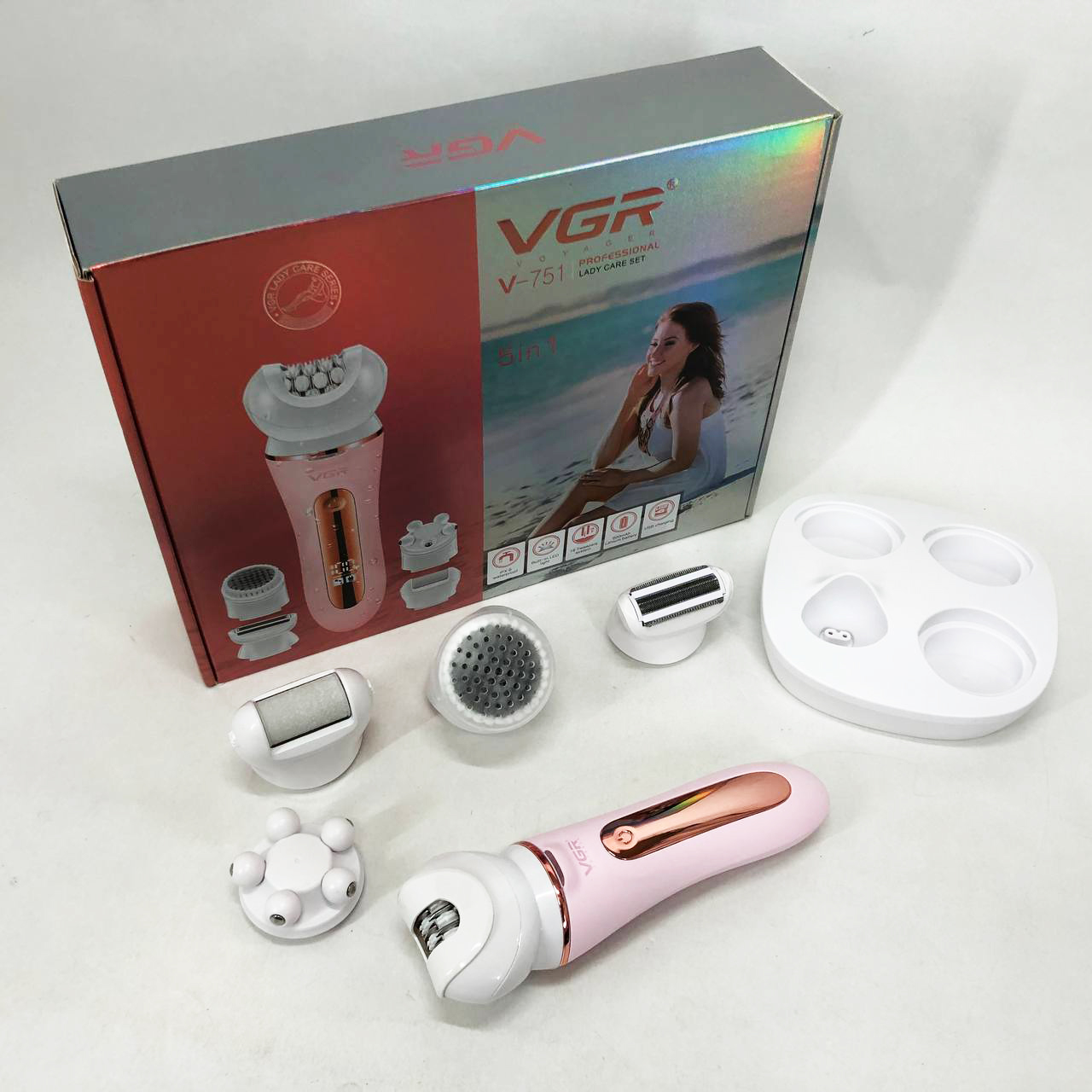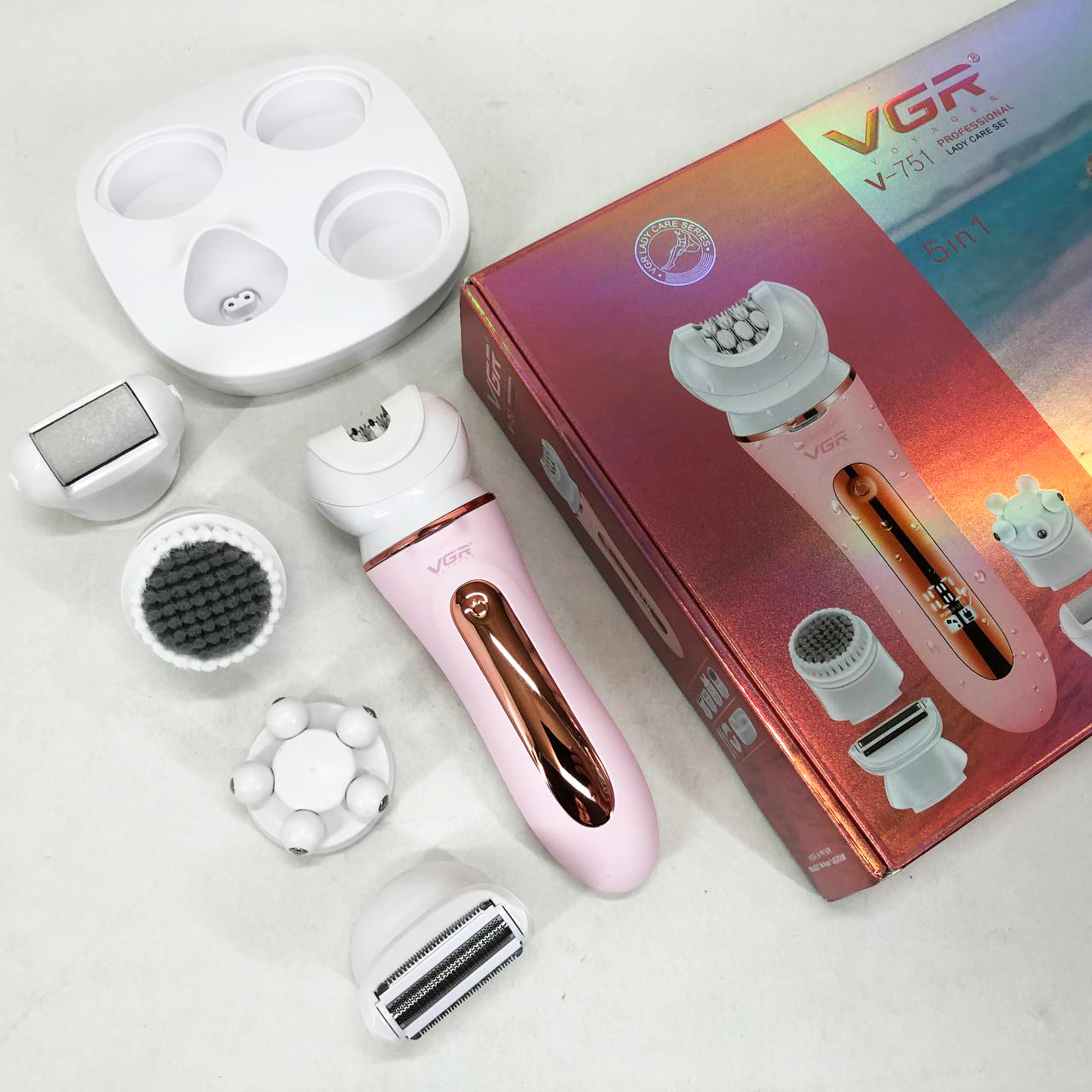 Эпилятор VGR 5 в 1 V-751, 5 насадок. Цвет: розовый