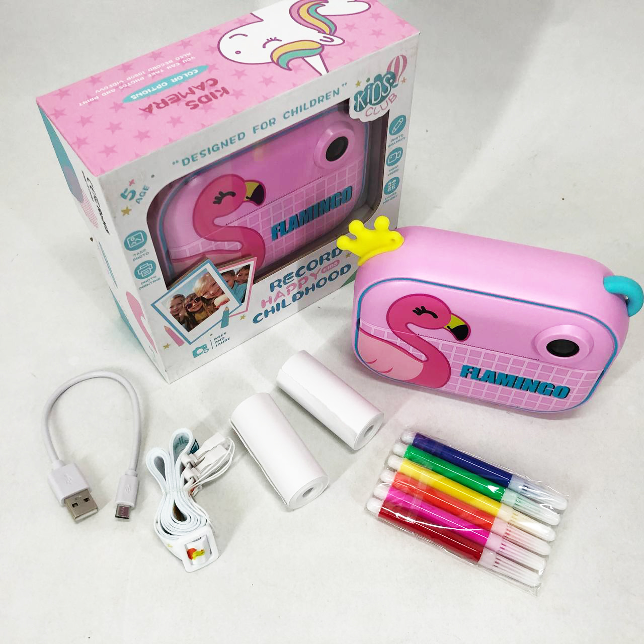 Детский фотоаппарат мгновенной печати YT008 PINK FLAMINGO с поддержкой microSD