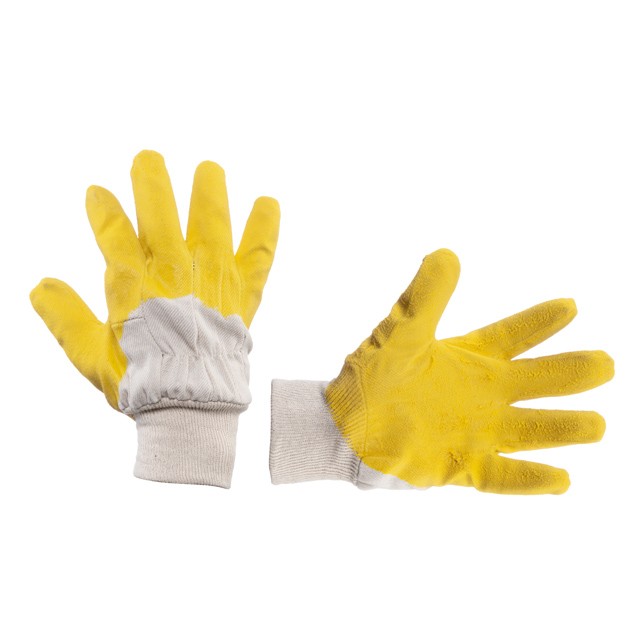 Рукавичка скляра тканинна, вкрита рифленим латексом на долоні, 10.5", жовта INTERTOOL SP-0002