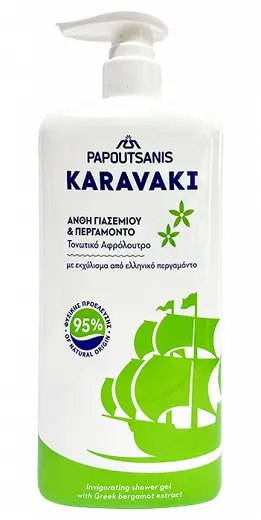 Новий освіжаючий гель для душу KARAVAKI Papoutsanis з екстрактом грецького бергамоту та кольором жасмину ідеально підходить для всієї родини завдяки дбайливій формулі з вітаміном Е та 95% інгредієнтів натурального походження.