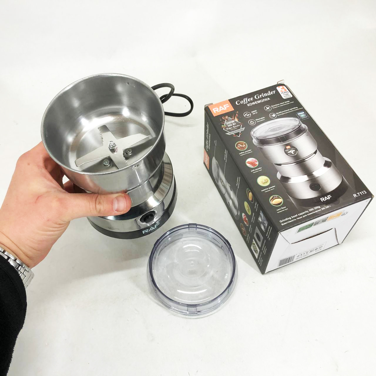 Кофемолка RAF R-7113 мощная роторная, измельчитель электрический, из нержавеющей стали 150 Вт