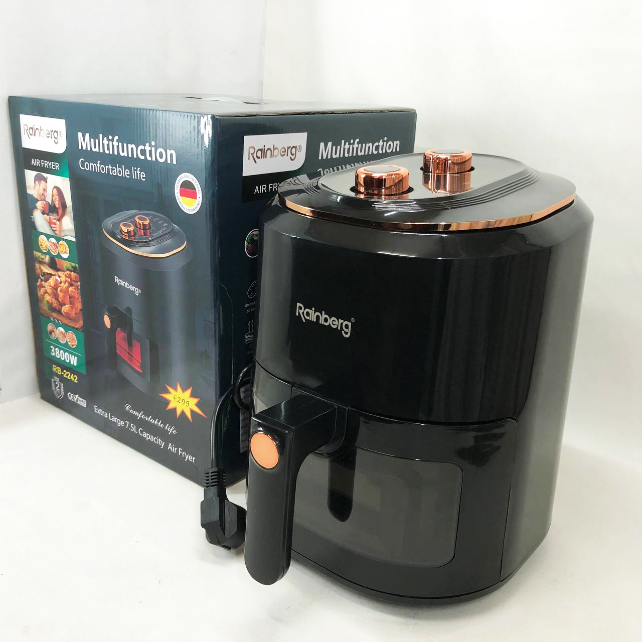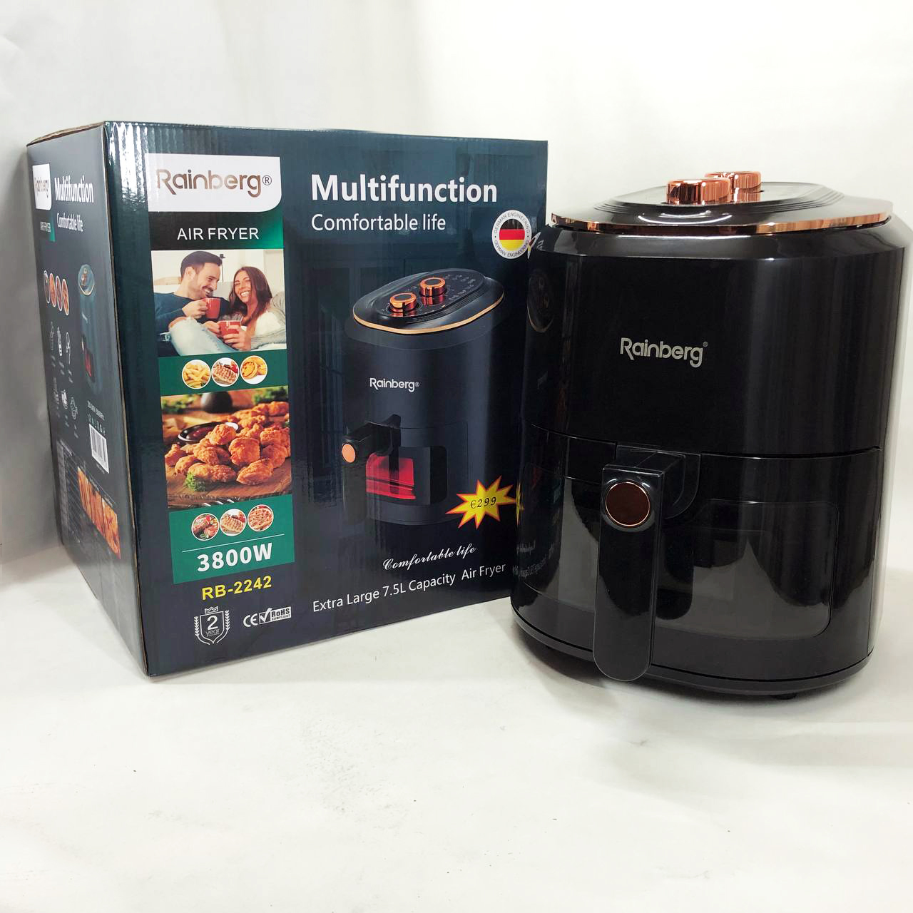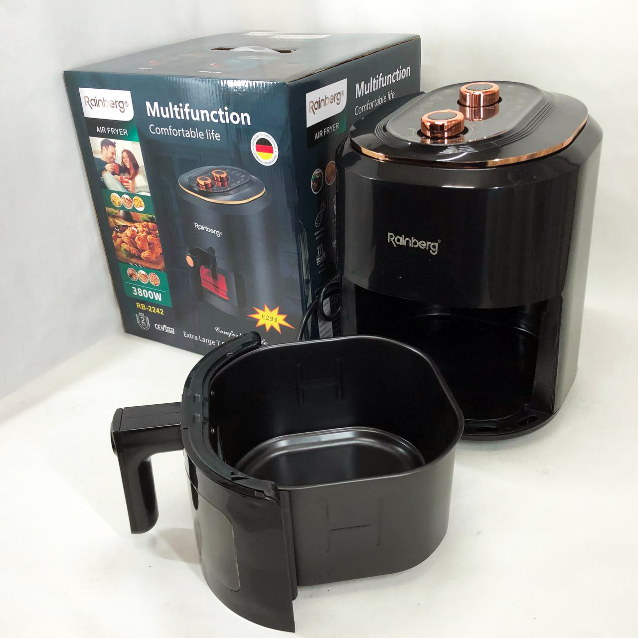 Аэрофритюрница для дома с таймером Rainberg RB-2242 на 6 л безмасляная фритюрница 3800 Вт. Цвет: черный