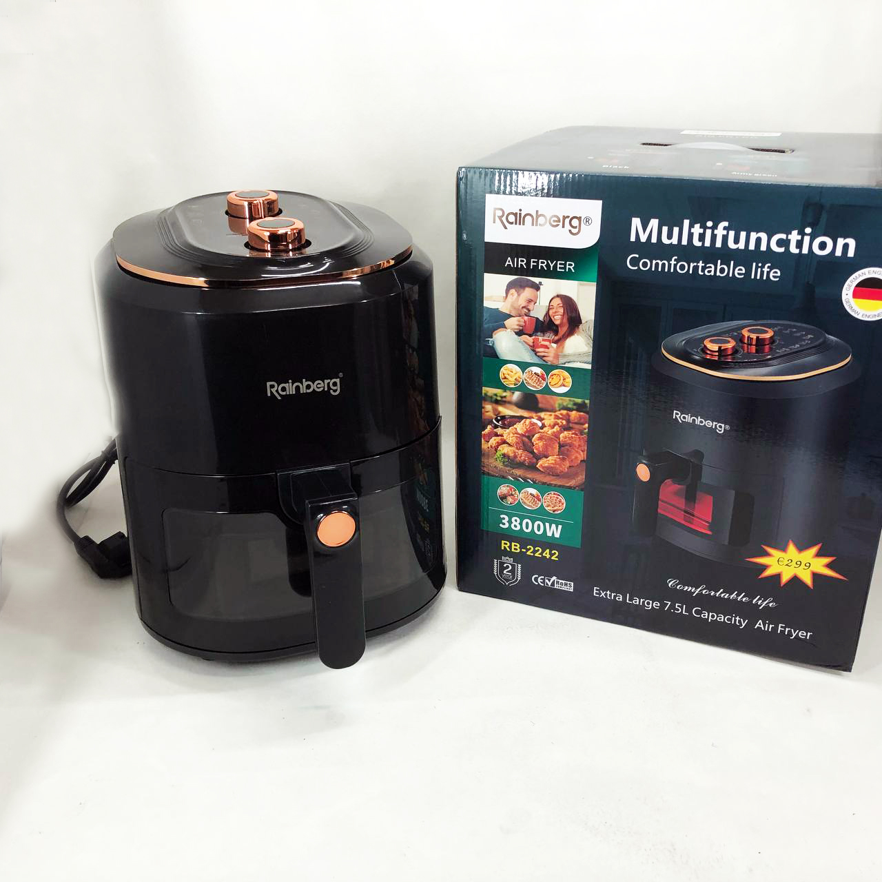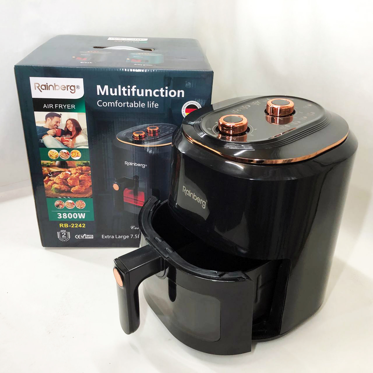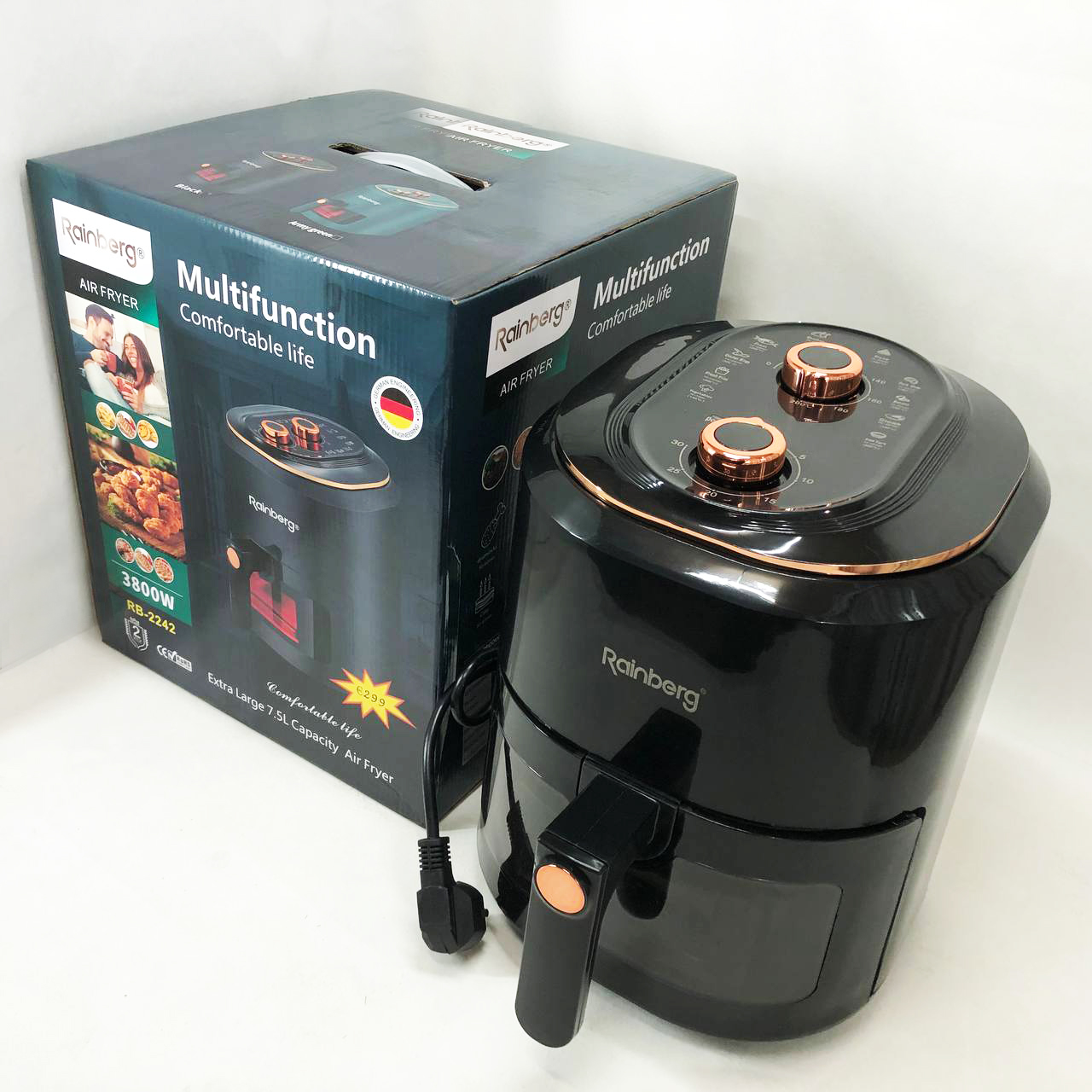 Аэрофритюрница для дома с таймером Rainberg RB-2242 на 6 л безмасляная фритюрница 3800 Вт. Цвет: черный