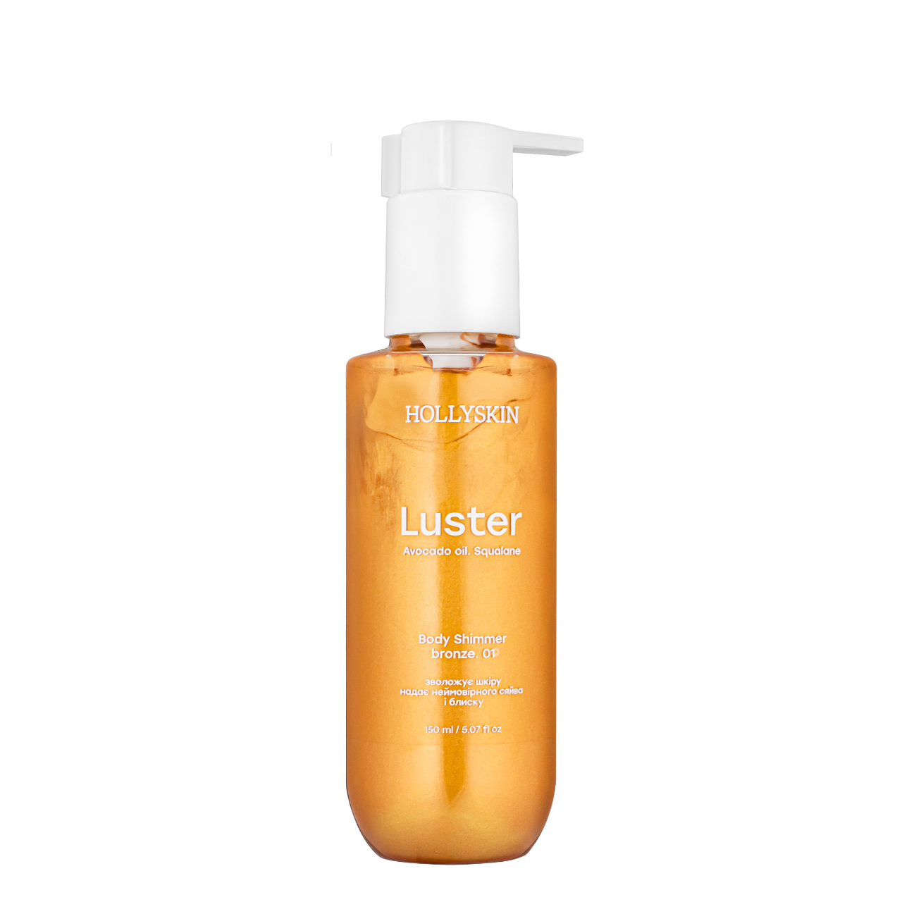 Шимер-крем для тіла Hollyskin Luster Body Bronze з олією авокадо та скваланом — сяйво та догляд в одному флаконіВідкрийте для себе нові грані краси та досконалості із шимером для тіла від Hollyskin. Легкий крем із блискітками ідеально лягає на тіло, своїм сяйвом красиво підкреслює засмагу.Завдяки світловідбивним часточкам шимер зменшує видимість розтяжок і пігментних плям, згладжує нерівності, надає тілу таємничого сяйва та неймовірного аромату!Боді-шимер — чудовий засіб для шкіри, який має відмінні зволожувальні та живильні властивості. Як працюють активні компоненти:сквалан — відновлює природний бар'єр шкіри, заспокоює та зменшує відчуття сухості; олія авокадо — пом'якшує, розгладжує, інтенсивно живить суху та дуже суху шкіру, зміцнює її захисний бар'єр, запобігає випаровуванню вологи.Як користуватися:Нанесіть трохи засобу на тіло масажними рухами.Увага! Шимер може залишати сліди на одязі. Щоб уникнути цього, наносьте крем на відкриті ділянки тіла, зачекайте кілька хвилин до повного вбирання.Об'єм: 150 мл