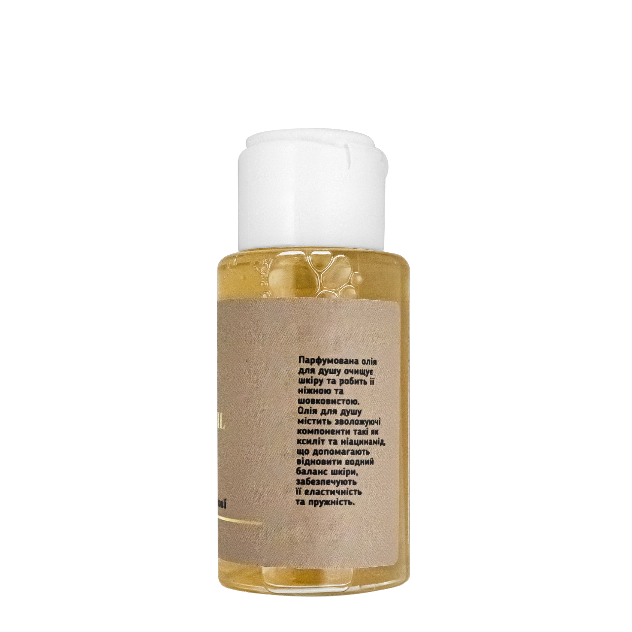 Парфумована олія для прийняття душу Top Beauty Ambergris-Vanilla-Patchouli зі зволожувальним ефектомПарфумована олія для душу з амброю, ваніллю та пачулями — зволоження й аромат в одному флаконі. Засіб м'яко очищає шкіру, роблячи її ніжною, гладкою й шовковистою.Формула очисної олії для тіла збагачена зволожувальними компонентами — ксилітом і ніацинамідом, які сприяють відновленню та збереженню водного балансу шкіри, підвищують її еластичність і пружність. Завдяки своїй текстурі, олія перетворюється на ніжну піну під час контакту з водою, даруючи комфорт і відчуття SPA-догляду в домашніх умовах.Ароматна композиція з амброю, ваніллю та пачулями схожа на парфумований гель для душу зі стійким шлейфом. Тревел-версія засобу для душу — ідеальне рішення для тих, хто хоче піклуватися про шкіру навіть у поїздках або після тренування.Як використовувати:Нанесіть невелику кількість парфумованої олії на вологу шкіру під час душу. Розподіліть по тілу круговими рухами до утворення легкого молочка. Змийте теплою водою.Об'єм: 50 мл