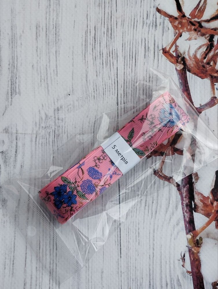 Стрічка декоративна репс 2,5 см Квіти 5 м.