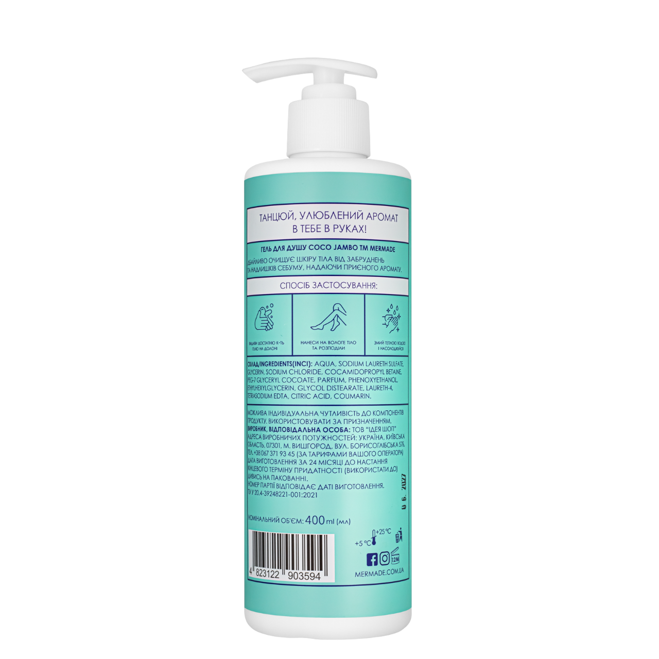 Гель для душу з ароматом кокоса Mermade Coco Jambo для жінокШукаєте гель для душу з натуральним ароматом кокоса, який дарує шкірі м'якість і зволоження? Познайомтеся з Mermade Coco Jambo Shower Gel — ароматним гелем для купання, який перетворює щоденний душ на тропічний SPA-ритуал.Солодкий і кремовий аромат кокоса розслаблює й переносить вас в атмосферу відпустки. Завдяки збалансованій формулі засіб для душу ефективно видаляє пил, піт і зайвий шкірний жир, не пересушує шкіру та не порушуючи її захисний бар'єр.Переваги гелю для душу від Mermade:делікатно очищає шкіру та підходить для щоденного застосування;