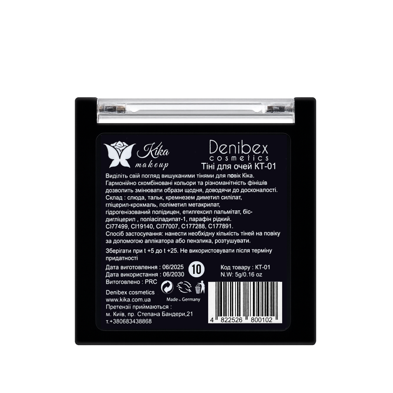 Одинарні тіні для макіяжу повік Kika KT-01Шимерні та матові відтінки тіней для повік Kika допоможуть вам створити унікальні образи для будь-якого випадку. Ви зможете підкреслити красу очей і у денному, і у вечірньому образі. Тіні мають відмінну пігментацію і високу стійкість. Вони добре розтушовуються, не скочуються і не обсипаються протягом дня. Блискучі та матові текстури в колекції тіней для очей Kika допоможуть вам створювати унікальні та оригінальні луки.З монотіней ви зможете зібрати свою ідеальну палетку, в якій кожен відтінок ідеально вам підходить. До тіней додається зручний аплікатор. У футлярі є маленьке дзеркальце, яке допоможе вам підправити макіяж очей у будь-який час.Спосіб застосування: використовуйте тіні для макіяжу очей, а також як підводка.