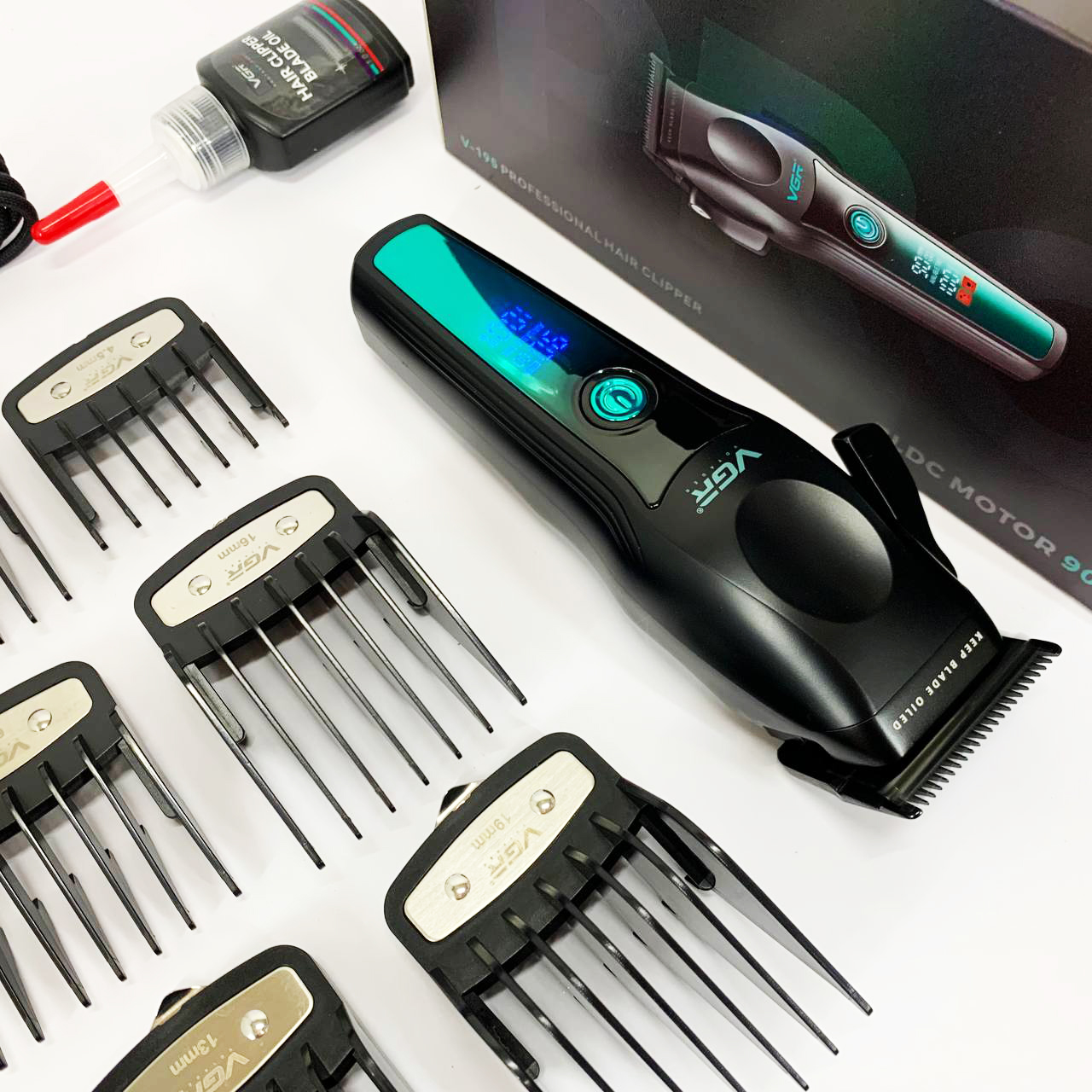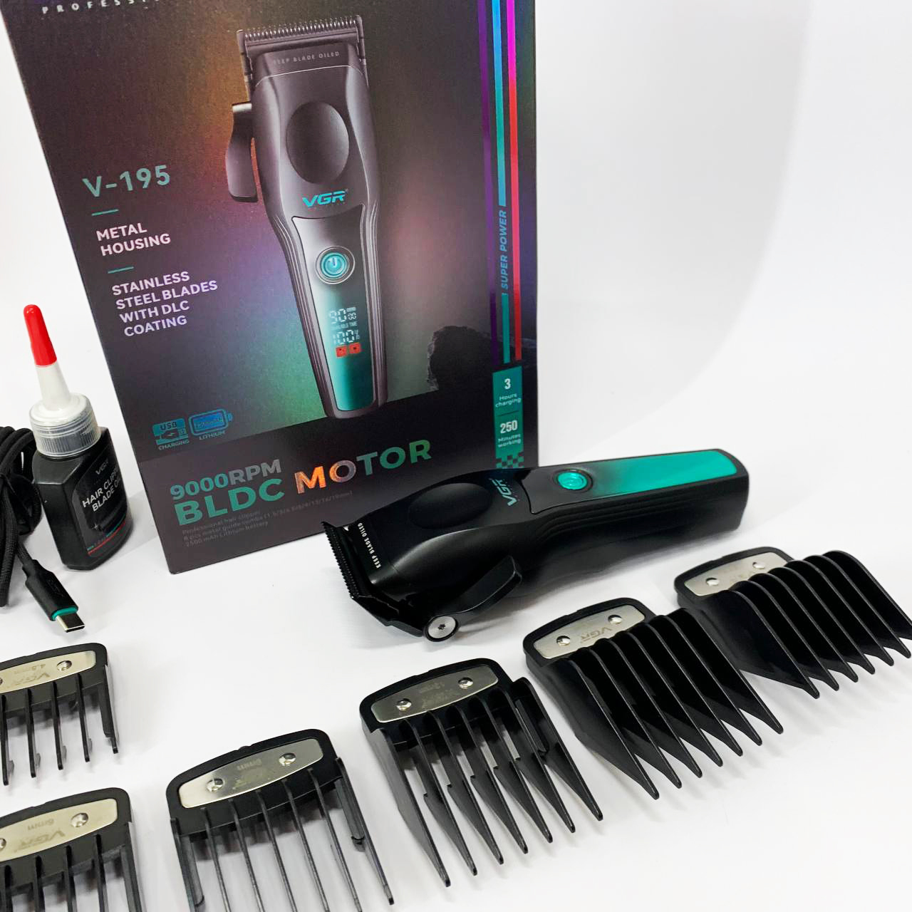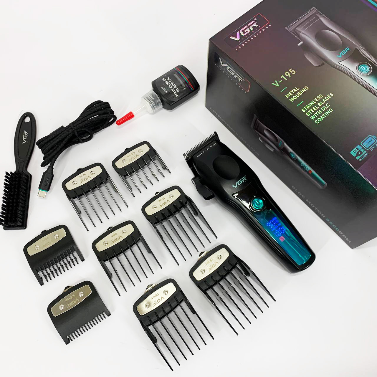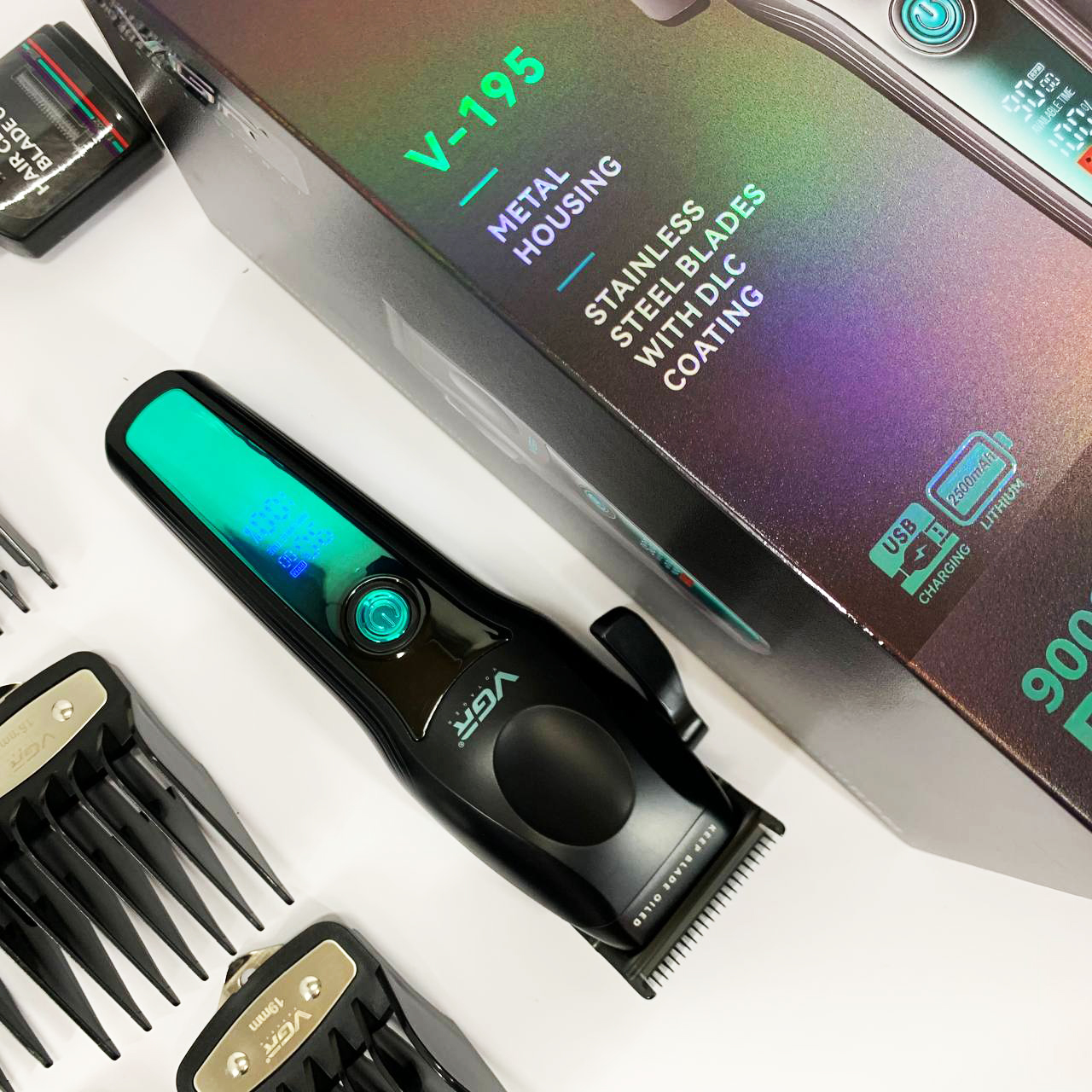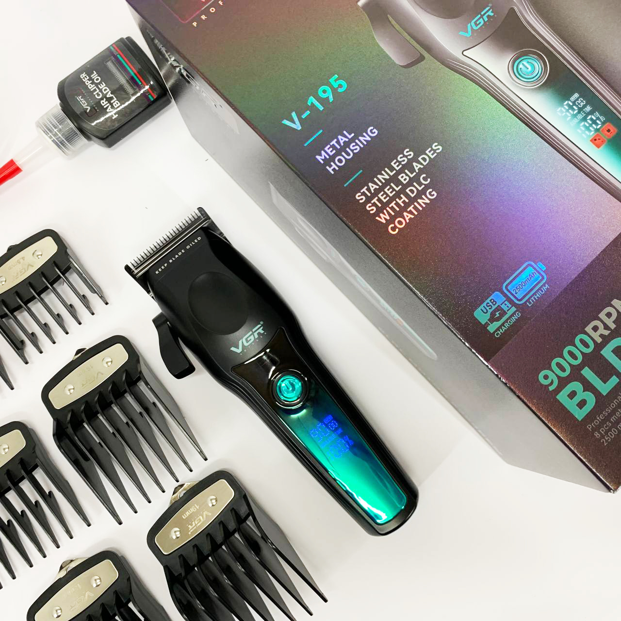 В комплект входят 8 съёмных насадок, позволяющих точно регулировать длину среза для создания различных стилей — от аккуратной окантовки до полноценной стрижки. Интуитивно понятный LED-дисплей информирует о текущем уровне заряда, необходимости смазки, режиме работы и состоянии зарядки. Беспроводной формат обеспечивает свободу движений, а высокая производительность, надёжность и универсальность делают VGR V-195 GREEN отличным выбором как для профессионалов, так и для личного ухода.
