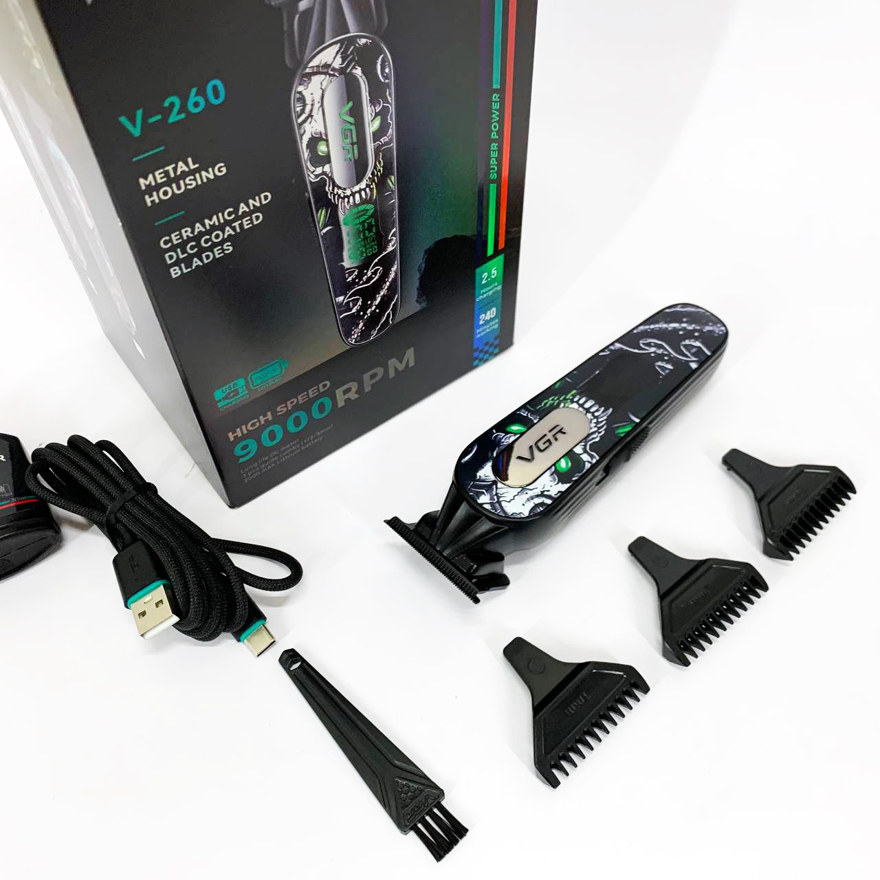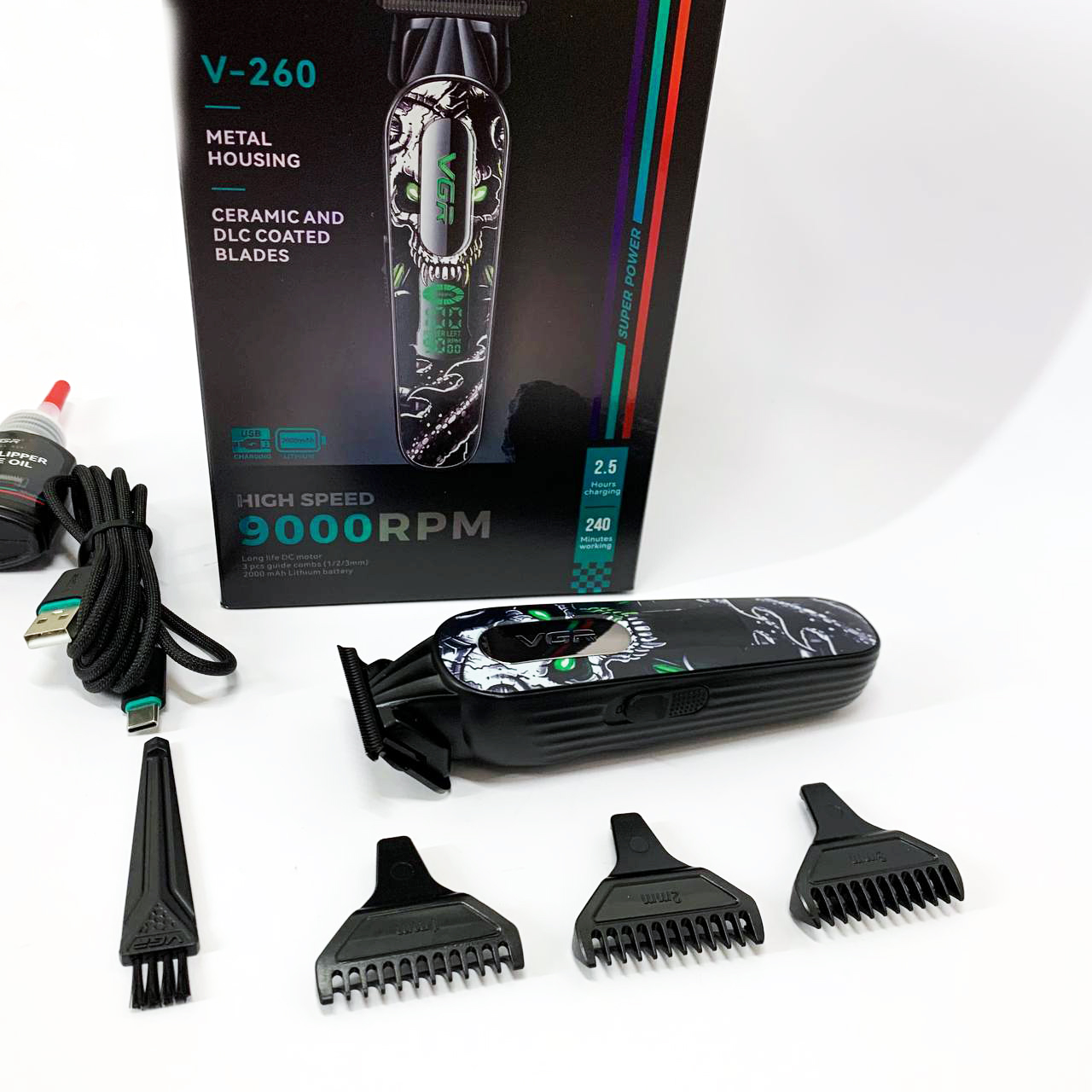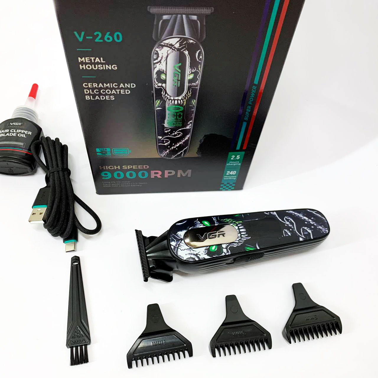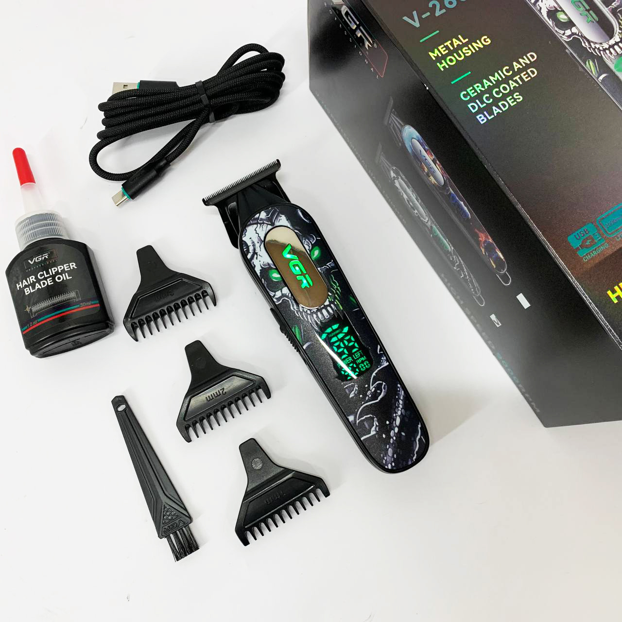 В комплект входят 3 насадки, позволяющие регулировать длину среза и подстраивать триммер под различные стили и зоны ухода. LED-дисплей отображает уровень заряда, напоминание о смазке и другие рабочие параметры, обеспечивая полный контроль во время использования. VGR V-260 GREEN — это сочетание мощности, удобства и функциональности в эффектном и надёжном исполнении.