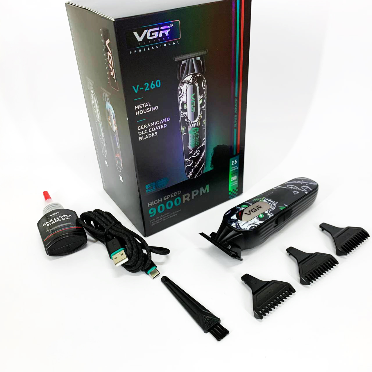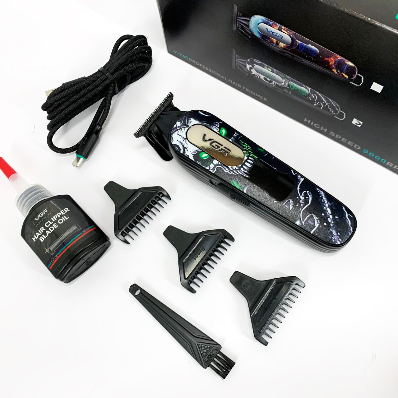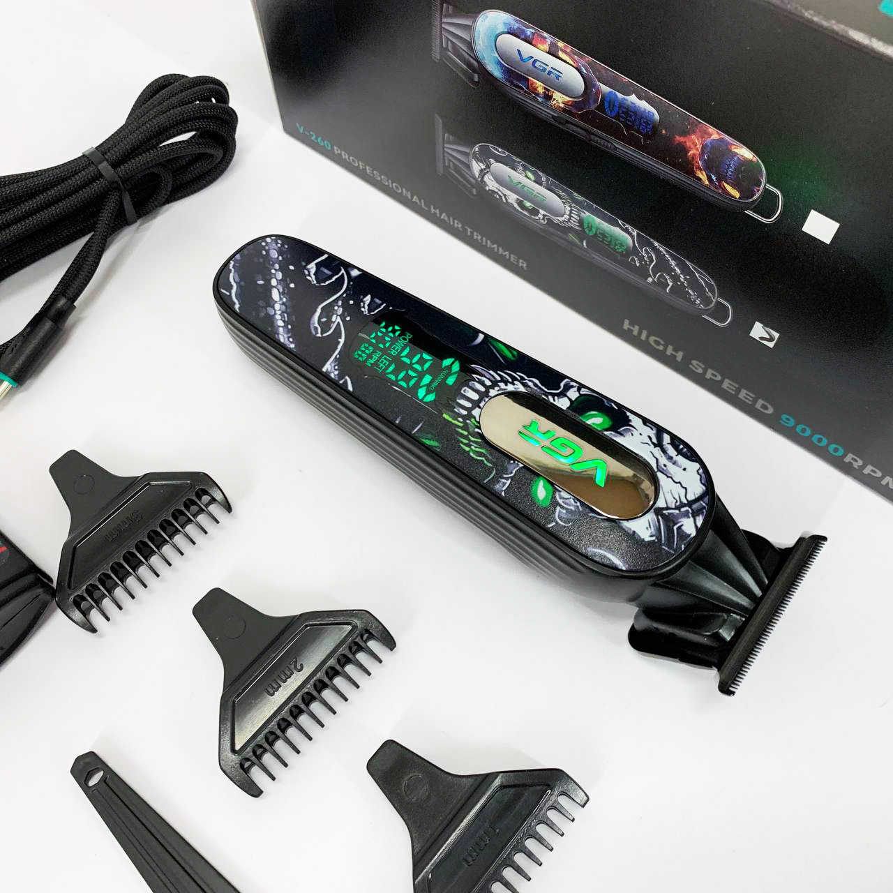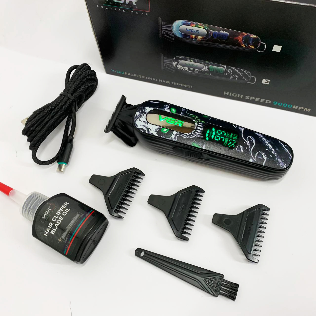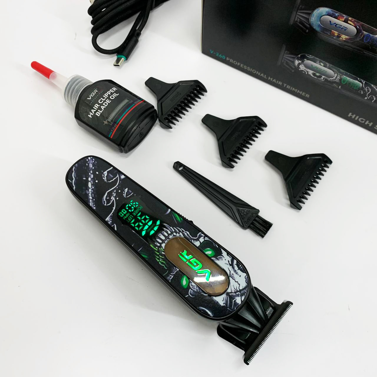 В комплект входят 3 насадки, позволяющие регулировать длину среза и подстраивать триммер под различные стили и зоны ухода. LED-дисплей отображает уровень заряда, напоминание о смазке и другие рабочие параметры, обеспечивая полный контроль во время использования. VGR V-260 GREEN — это сочетание мощности, удобства и функциональности в эффектном и надёжном исполнении.