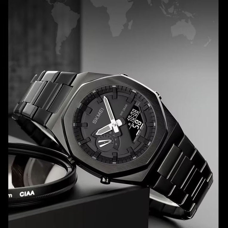 Часы SKMEI 1816BKBKBK — это современное воплощение урбанистического минимализма в глубоком черном цвете. Благодаря комбинации аналоговой индикации и цифрового дисплея эта модель выглядит стильно и технологично. Вся конструкция – от корпуса до браслета – выполнена из матового металла, что создает впечатление целостности и строгости. Этот аксессуар легко сочетается как с деловым костюмом, так и с кэжуал образом.