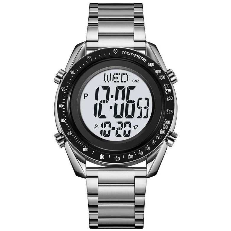 SKMEI 2145SIBK – это сочетание спортивной функциональности и классического стиля в одном аксессуаре. Серебристый металлический корпус и браслет гармонично контрастируют с черным безелем и белым цифровым дисплеем, создавая яркий, современный образ. Благодаря продуманному дизайну и удобной посадке на запястье, часы идеально подходят как для ежедневного использования, так и для активного отдыха.