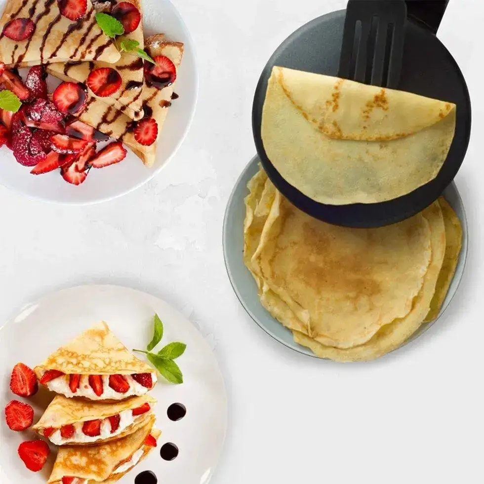 Электрическая блинница – это компактное и удобное устройство для быстрого приготовления вкусных блинов, оладий и тонких лепешек. Благодаря диаметру поверхности 20 см она идеально подходит как для порционных блинчиков, так и для закусочных вариантов. Погружной тип конструкции позволяет легко захватывать тесто и равномерно распределять его по рабочей поверхности, что особенно удобно при приготовлении тонких и аккуратных блинчиков. Модель оснащена антипригарным покрытием, которое предотвращает прилипание теста и облегчает процесс приготовления. Это позволяет готовить без добавления масла, делая блюда более диетическими. Поверхность легко очищается – достаточно протереть ее влажной салфеткой после использования. Такое покрытие не только упрощает уход за устройством, но и продлевает срок его службы.