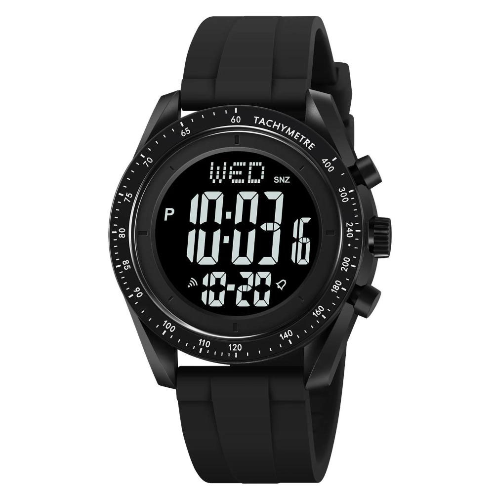 SKMEI 2045BKBK — это цифровые часы в полностью черном исполнении, идеально сочетающие практичность и сдержанный стиль. Большой экран с белыми цифрами на темном фоне обеспечивает отличную контрастность, а безель с тахиметром придает модели спортивного характера. Благодаря классическому монохромному дизайну часы легко сочетаются с любой одеждой — от кэжуала до спортивного.