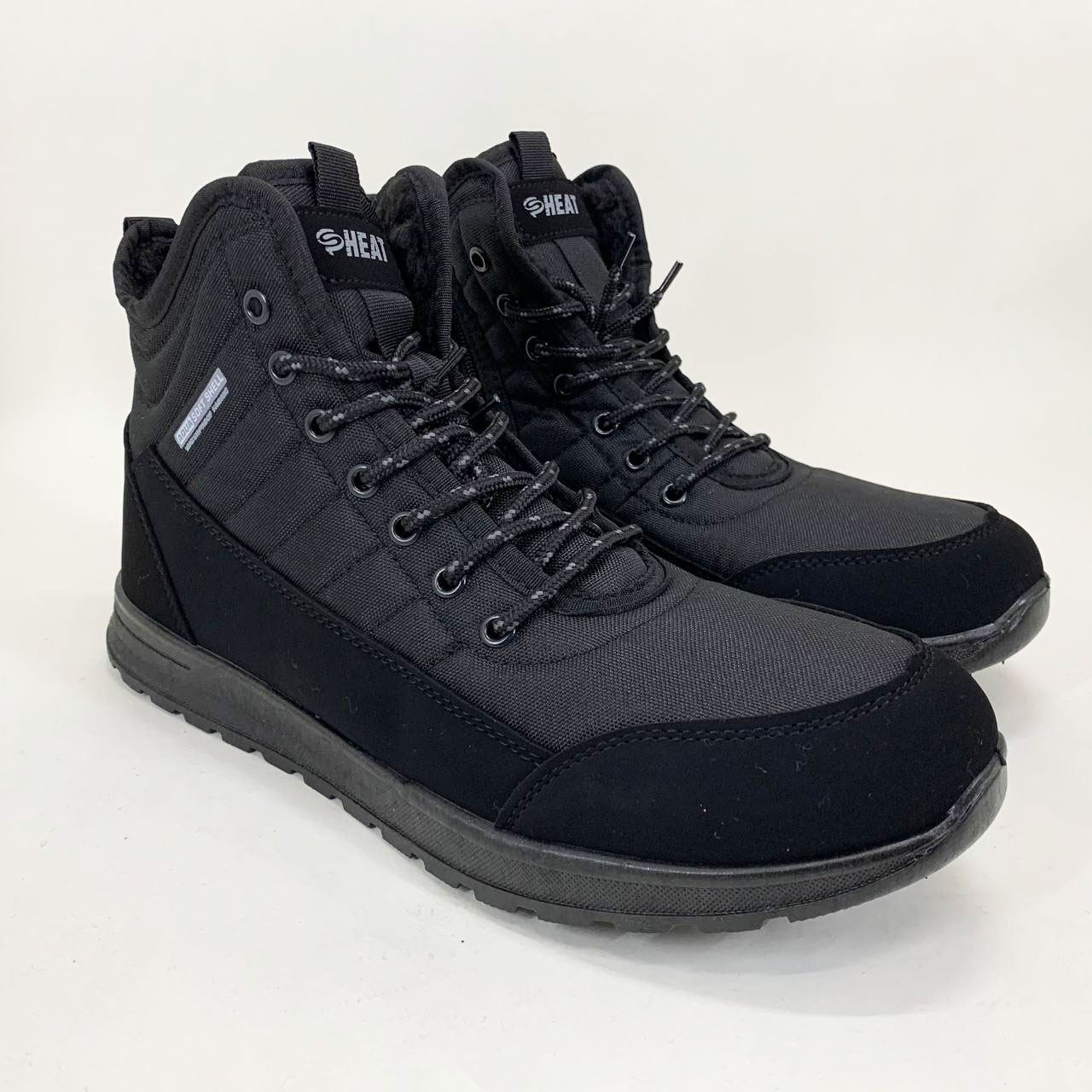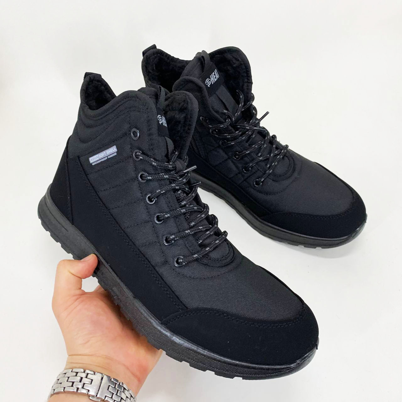 Мужские утепленные ботинки — это функциональная зимняя обувь, которая сочетает современный вид с высокой износостойкостью и комфортом. Верх модели изготовлен из прочного текстиля с водоотталкивающими свойствами, усиленного вставками из искусственной замши. Высокий силуэт и классическая шнуровка придают обуви надежную фиксацию, что особенно важно в прохладное время года.