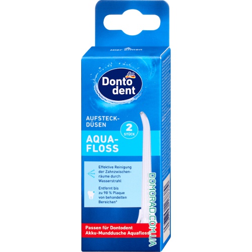 Насадки Dontodent для іригатора порожнини рота Aquafloss забезпечують ретельне очищення міжзубних проміжків за допомогою точного струменя води. Вони ефективно видаляють зубний наліт і підтримують комплексну гігієну порожнини рота. Завдяки простоті використання насадки можна легко прикріплювати та замінювати. Ідеально підходять як доповнення до щоденного догляду за зубами