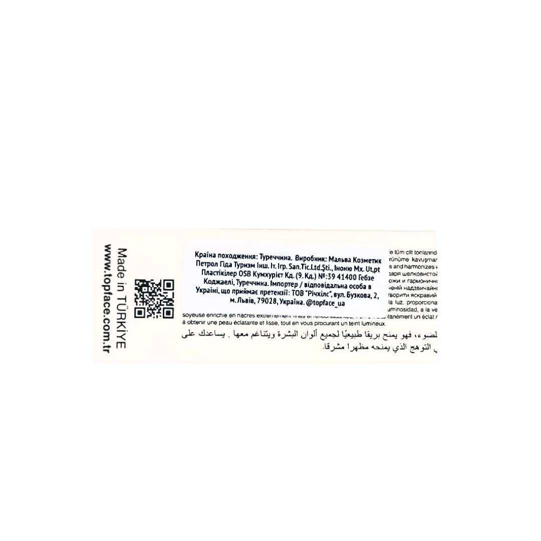 Рідкий хайлайтер для обличчя та тіла topface ProHD Super DewyЦей рідкий хайлайтер забезпечує ультрасвітловий ефект, зволоження та догляд завдяки унікальній формулі з гіалуроновою кислотою, вітаміном Е та комплексом натуральних олій. У складі — ультрадрібні блискітки, які рівномірно розподіляються по шкірі, даруючи їй вишукане сяйво.Вологий хайлайтер від topface підходить як для обличчя, так і для тіла — своїм дрібним шимером він вишукано підкреслює вилиці, ключиці або плечі. Прекрасно поєднується з тональним кремом, створюючи ніжніше та делікатніше сяйво.У колекції представлені три розкішні відтінки для будь-якого підтону шкіри:сріблястий — світле холодне сяйво для власниць блідої шкіри;